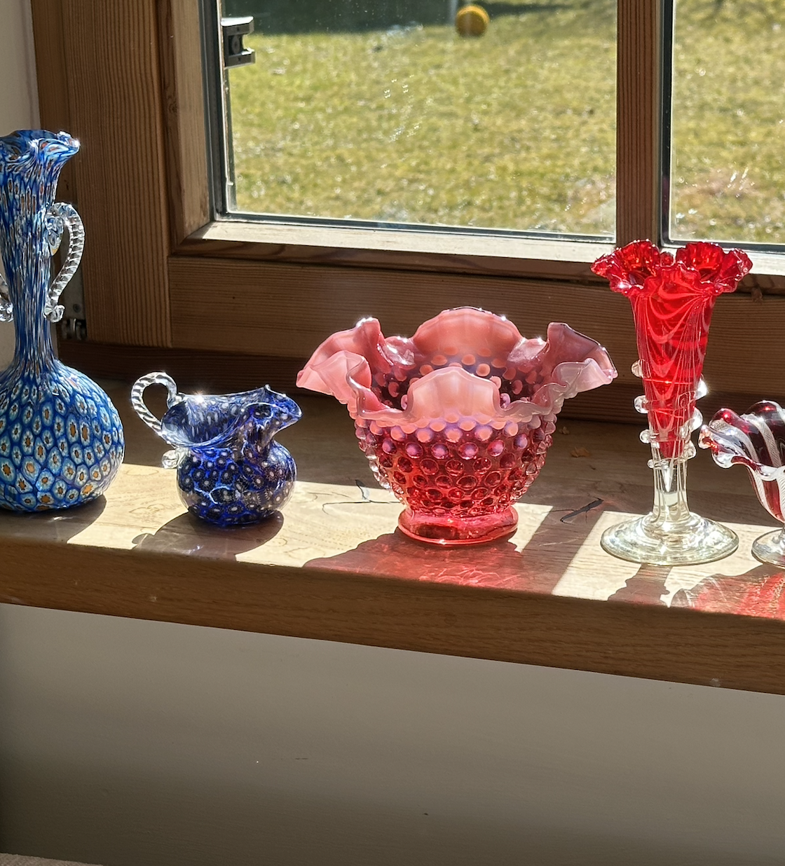 크랜베리 유리의 붉은빛은 금을 소량 첨가하여 만들어지며, 빛을 받으면 더욱 화려하게 반짝입니다.