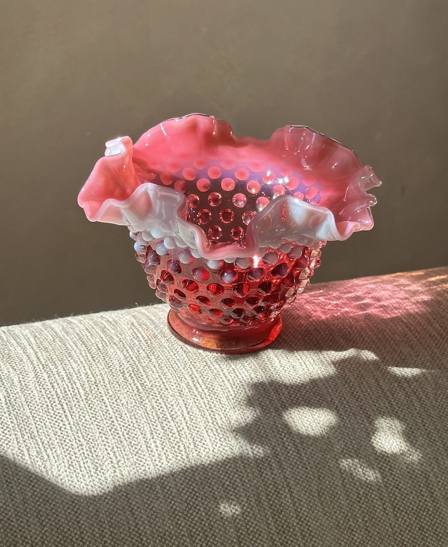 Fenton Cranberry Hobnail Opal Vase