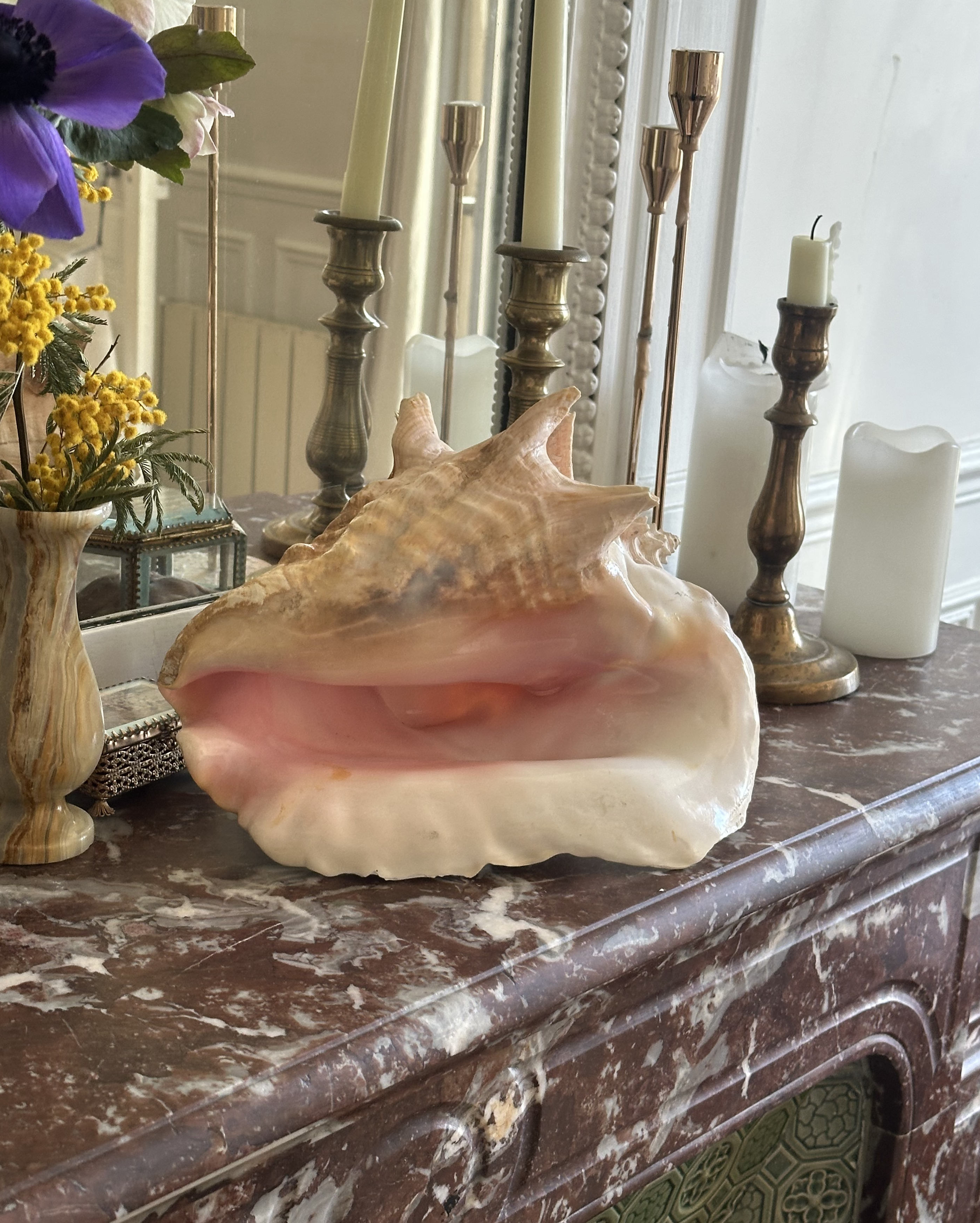 자연 그대로의 형태를 간직한 대형 사이즈의 퀸 콩크 쉘입니다. 부드럽게 말린 곡선과 풍성한 실루엣과 은은하게 비치는 핑크 톤이 조화를 이루며 공간을 한눈에 환하게 밝혀주는 존재감을 지닌 오브제입니다. 이렇게 밝고 선명한 내부 컬러를 찾아보기 어려운데 오묘한 아름다운 색감들이 섞여있고 표면에는 자연이 만든 결과 텍스처가 그대로 살아 있어 해안가의 공기와 바다의 깊은 색감을 집 안으로 가져온 듯한 코스탈 데코무드를 완성해줍니다. 대형 사이즈 특유의 볼륨감 덕분에 단독으로만 배치해도 충분히 멋스러우며, 자연 쉘이 가진 유일무이한 패턴과 색감 덕분에 세상에 단 하나뿐인 오브제라는 특별함까지 더해집니다.