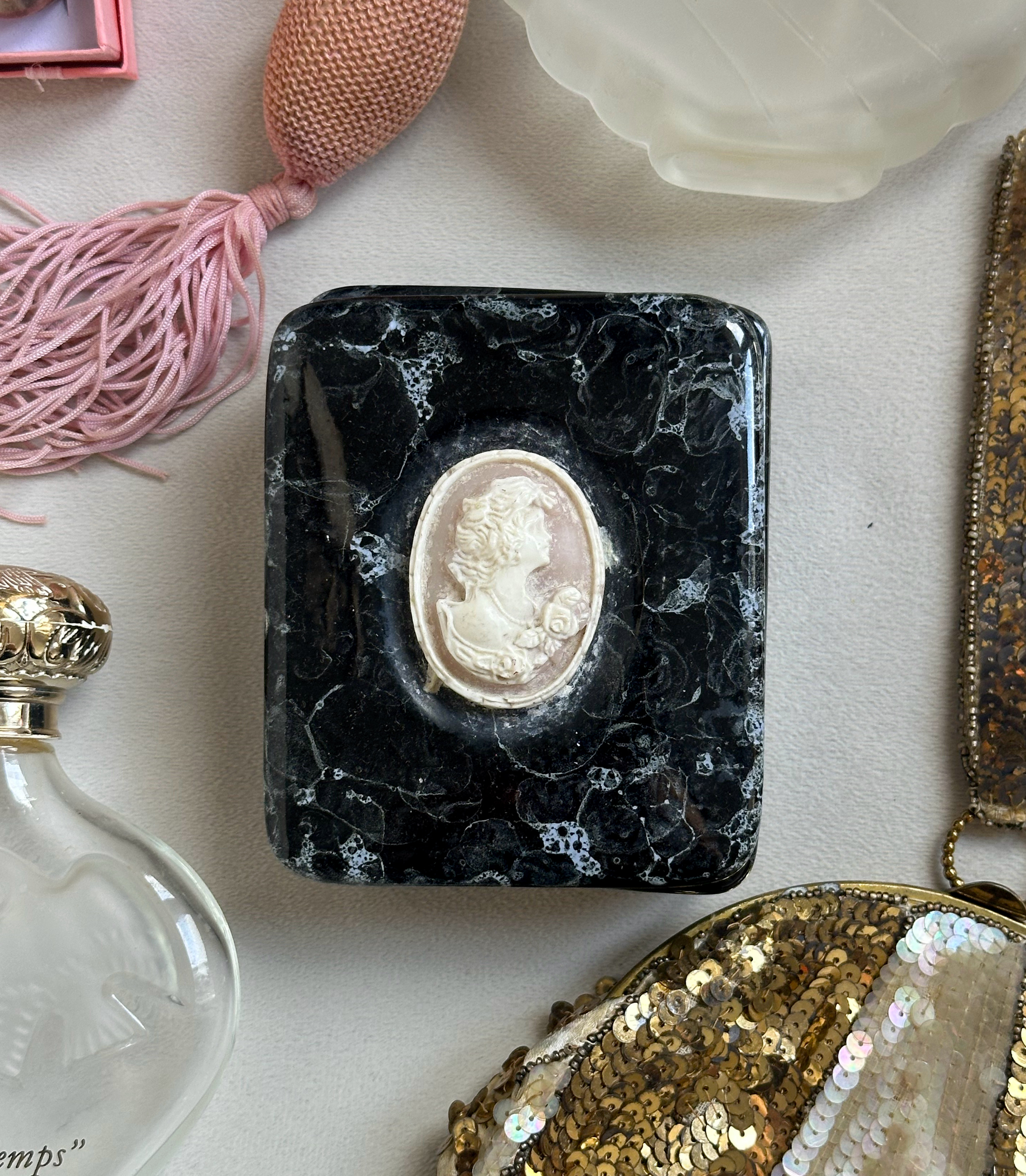 우아한 고전미와 현대적인 세련미가 공존하는 카메오 마블 세라믹 보석함은 매끄러운 세라믹 바디 위에 섬세하게 조각된 카메오 장식이 더해져 마치 박물관의 귀중한 소장품을 마주하는 듯한 예술적 아우라를 선사합니다. 은은하게 흐르는 마블 패턴의 고급스러운 질감이 정교한 수작업의 디테일과 어우러져 단순한 수납함을 넘어 공간의 품격을 높여주는 독보적인 오브제가 되어줍니다. 소중한 주얼리나 작은 소지품을 담아두기에 최적화된 내부 공간과 함께, 뚜껑을 장식한 입체적인 카메오의 우아한 실루엣은 시선을 사로잡는 강력한 존재감을 드러내며, 시간이 흘러도 변치 않는 도자기 특유의 견고함과 고귀한 감성이 맞물려 일상의 가장 사적인 공간을 더욱 특별하고 낭만적인 무드로 가득 채워줄 것입니다.
