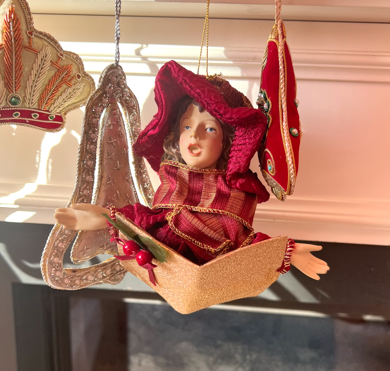 네덜란드의 크리스마스 빈티지 오너먼트입니다. 핸드메이드로 정성스럽게 만들어진, 어디서도 찾아볼 수 없는 독특한 디자인입니다. 어렸을때 봤던 동화속 눈내리는 크리스마스가 떠오르는 로맨틱한 오브제입니다. 악보를 보며 노래를 부르는 사랑스러운 소녀 인형, 그녀의 겨울 모자와 코트 그리고 악보까지 디테일하게 만들어져있습니다.