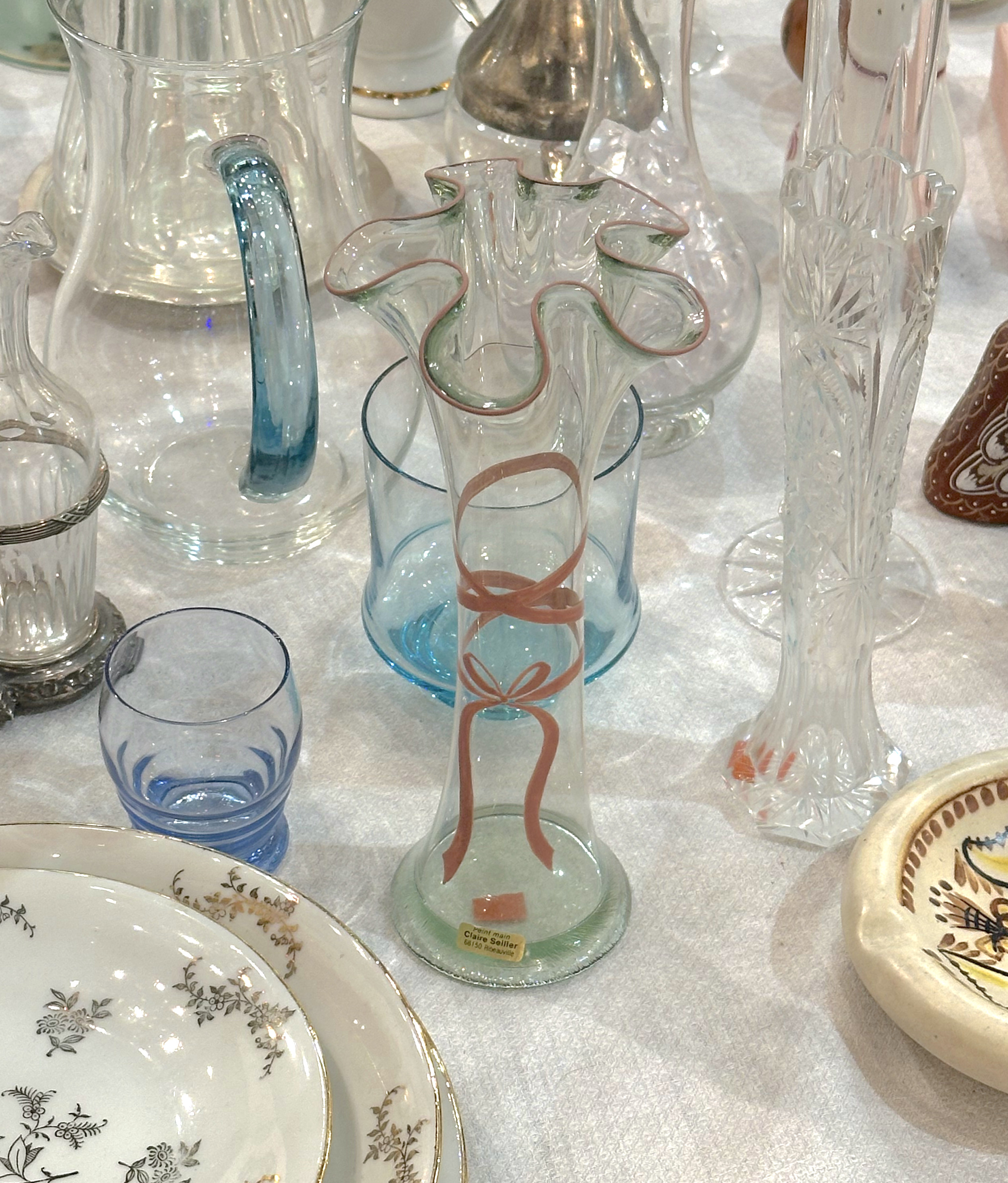 베르사유의 앤틱샵에서 바잉된 프랑스 알자스 지방 리보빌레 (Ribeauvillé )에서 제작된 핸드 페인팅 도자기 화병입니다. 사랑스러운 리본이 핸드페인팅이 되었고 아티스트의 이름 Claire Seiller 과 스튜디오 장소까지 나타난 스티커까지 보존된 제품입니다. 알자스 지역 특유의 전통적이고 따뜻한 감성이 느껴지는 디자인으로, 장식용 오브제로 활용하기 좋으며 지역 공예의 매력을 담은 소장 가치 있는 아이템입니다.