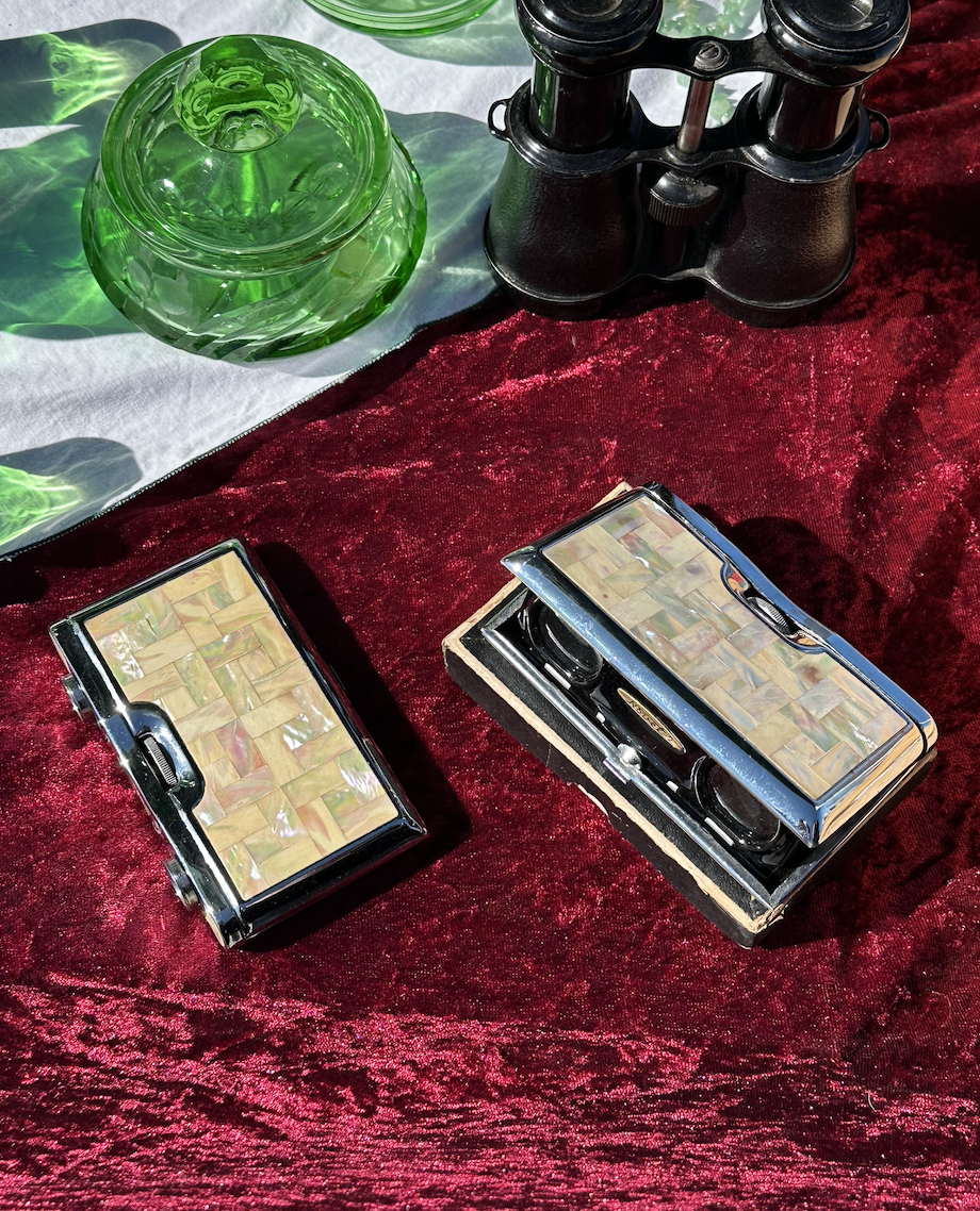 1960년도 만들어진 보물같은 오브제, 무대 위 찰나의 순간을 더 가까이 느낄 수 있게 만들어진 오페라 글라스입니다. 우아한 자개 (Mother of Pearl) 으로 콤팩트하게 접히는 빈티지 접이식 쌍안경입니다. 오페라, 연극, 클래식 공연 관람 시에 사용되던 시대를 담은 감성 오브제로 지금은 수집용으로도 사랑받는 아이템으로, 단순한 관람 도구를 넘어, 시대의 감성과 장인의 손길이 담긴 예술 작품으로 평가받습니다. 공연 관람 시 사용은 물론, 인테리어 소품이나 컬렉션 아이템으로도 손색이 없습니다. 아름다운 컨디션으로 보존된 퀄리티 높은 컬렉터의 소품입니다. 여닫이 부분이 헐거워 닫힌채로 유지가 되지 않는부분 참고 부탁드려요. 그부분 감안하여 가격 조정되었습니다.