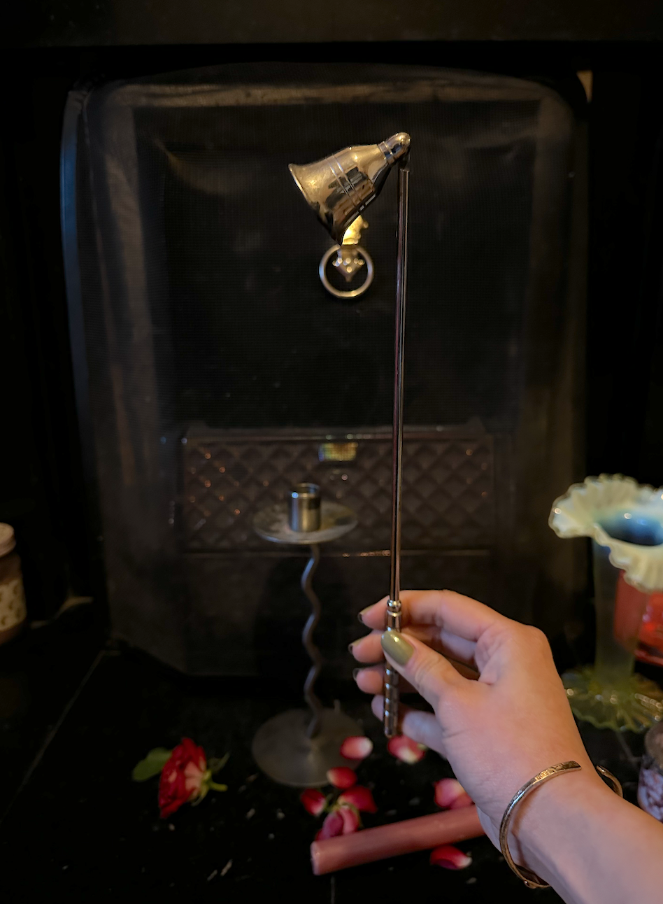 고전적이로 아름다운 아일랜드의 앤틱 캔들 스너퍼입니다. 360도가 돌아가는 디자인으로 각도 무시하고 사용할 수 있습니다. 보통 스너퍼보다 길이가 더 길어서 더욱 우아한 모습을 나타냅니다. 스너퍼는 제가 캔들을 킬때 꼭 사용하는 도구인데요, 불을 완전히 끄므로 안전성이 향상되고 불태우는 과정에서 생기는 부실한 연기를 막아 가구나 벽 등에 남은 얼룩을 줄일 수 있어 인테리어의 보존에 도움이 됩니다. 전체적으로 무게감과 균형감이 좋습니다. 멀리서 봤을때도 깔끔한 선들이 세련된 디자인의 제품입니다. 사용하지 않을때도, 테이블 위에 무심하게 디스플레이 하면 멋스러운 인테리어 소품이 됩니다.