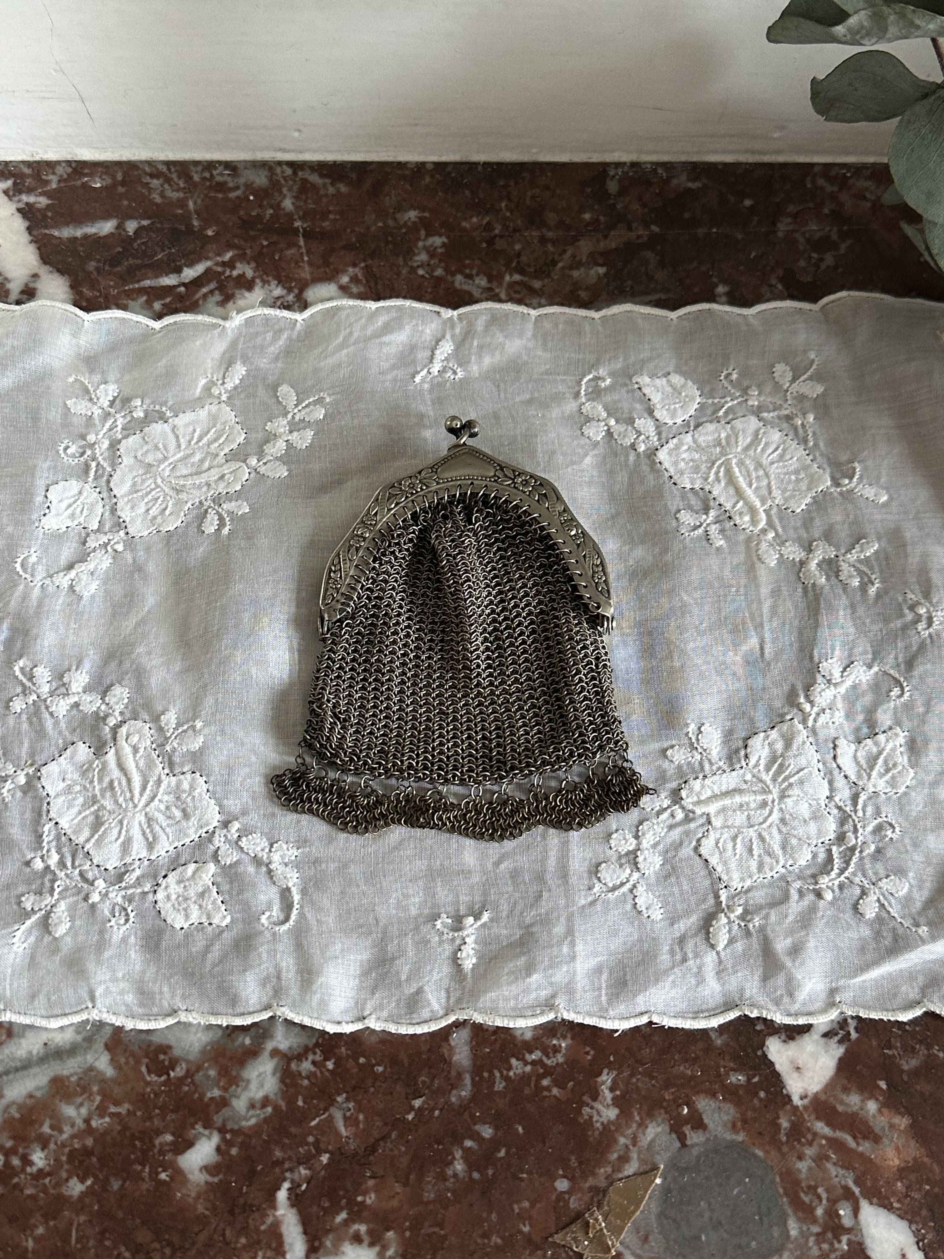 빅토리안과 에드워디안 시대의 클래식한 우아함을 간직한 체인메일 코인 퍼스입니다. 섬세한 금속 고리를 하나하나 엮어 만든 메쉬 공법은 마치 부드러운 직물처럼 유연하게 움직이며 빛의 각도에 따라 은은하고 고급스러운 광택을 자아내는 것이 특징입니다. 가방의 입구는 정교하게 세공된 프레임과 견고한 클로저로 마감되어 빈티지한 미학을 완성하며, 손가락에 가볍게 걸 수 있는 섬세한 체인이 달려 있어 실용적이면서도 우아한 장식미를 더해줍니다. 오랜 세월을 거쳐온 듯한 깊은 무드의 변색는 인위적인 새 제품에서는 느낄 수 없는 앤틱만의 고유한 서사를 들려줍니다. 연결고리들의 풀림이 있어 제품은 닫고 목걸이 팬던트나 키링처럼 달고다니는 제품으로 사용하시길 추천드립니다.