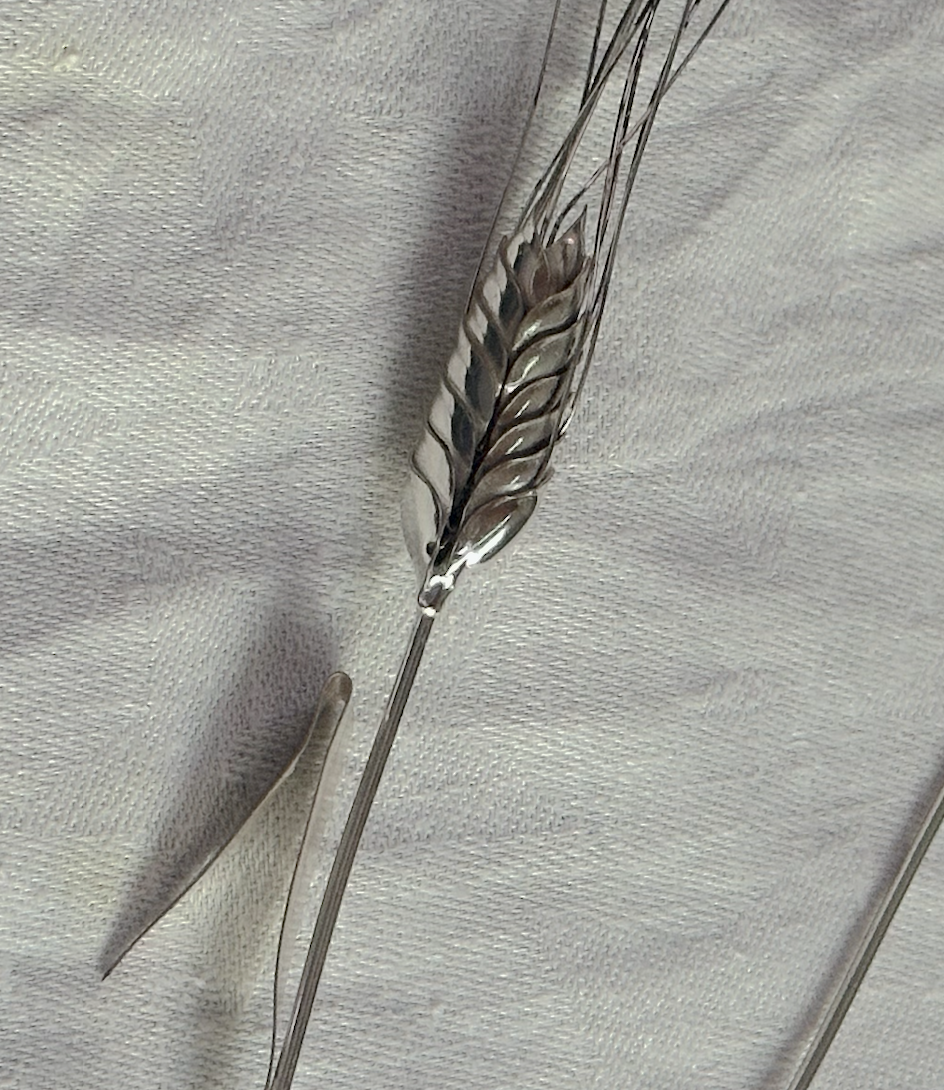 자연의 아름다움을 형상화한 고급 실버 오브제로, 농업이나 자연과 관련된 상징적 의미를 담고 있을 수 있습니다. 잎 위에는 실버 925 스탬프가 찍혀있습니다. 고급스러운 디자인과 섬세한 디테일로 수집가들 사이에서 가치를 지니는데, 주로 장식용이나 예술적 목적을 위한 아이템일 가능성이 큽니다. 다양한 공간에서 인테리어 장식품으로 사용될 수 있는데 주로 테이블 센터피스나 벽에 걸어두는 장식으로 활용되거나, 꽃병에 넣어 꽃을 꽂는 장식으로 쓰일 수도 있습니다. 또는 수집용 아이템으로서 장식용으로 사용되며, 자연의 아름다움을 표현하는 예술 작품으로 인식될 수 있습니다.