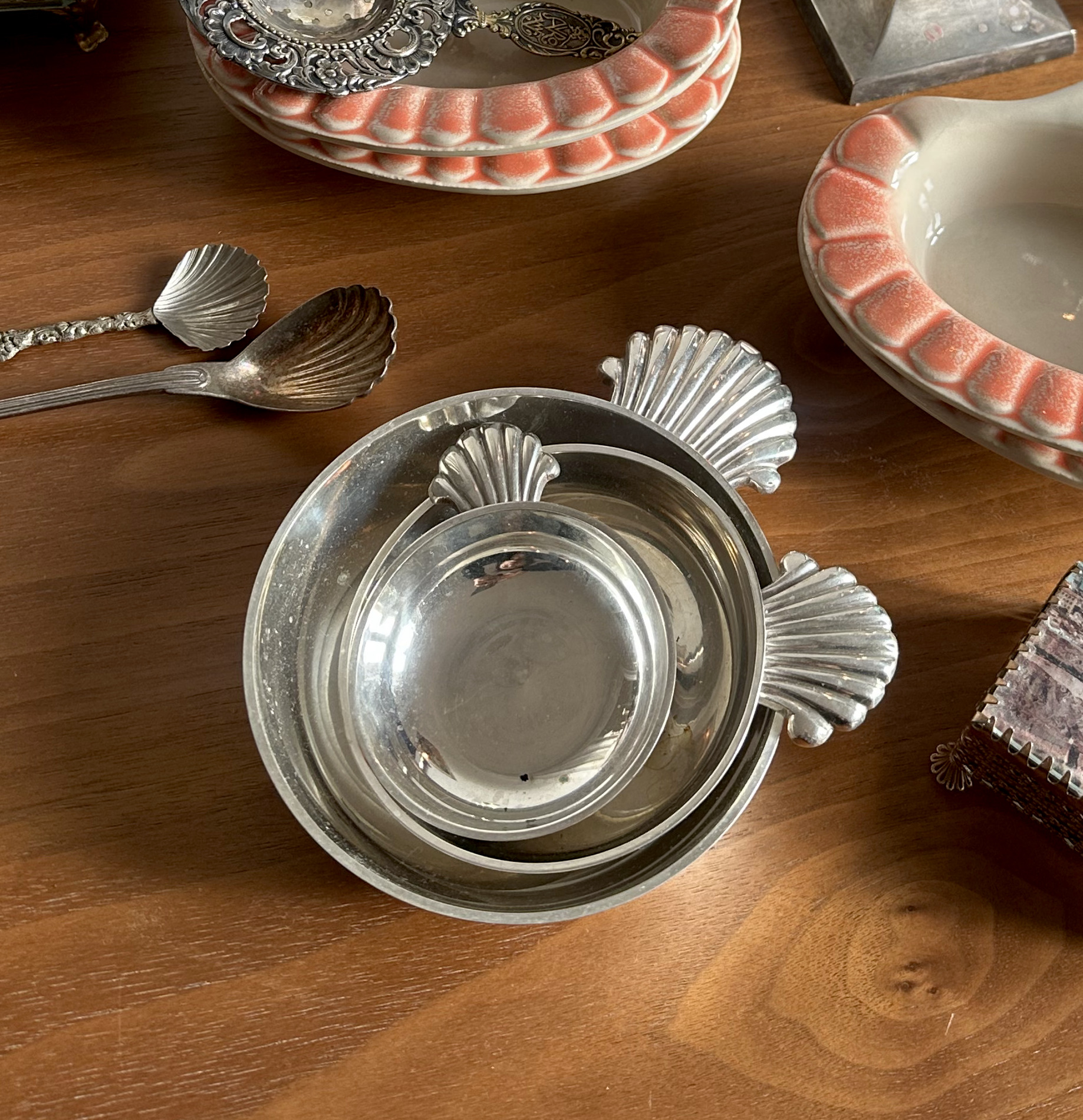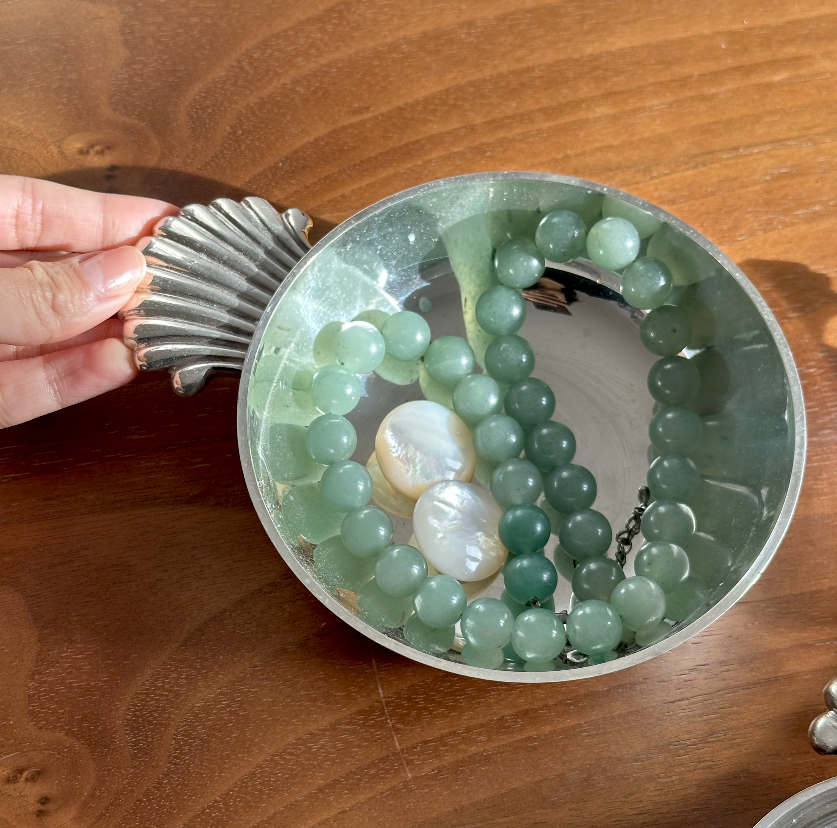 프랑스에서 제작된 실버 플레이트 와인 테이스팅 보울 입니다. 섬세한 쉘 디자인에 음각 디테일과 실버 특유의 은은한 광택이 어우러져, 작은 사이즈임에도 눈에 띄는 고급스러움을 자랑합니다. 빛을 받으면 표면의 반사와 깊이가 아름답게 드러나며, 와인의 컬러와 빛을 가장 풍부하게 보여주기 위해 고안된 클래식한 프렌치 디자인을 그대로 담고 있습니다. 수집용으로도 가치가 높으며, 인테리어 오브제로 두었을 때에는 공간의 품격을 한층 높여주는 아이템입니다. 실제 와인 테이스팅, 촛대 받침, 작은 트링켓 볼 등 다양하게 활용할 수 있는 점도 매력적이에요. 세월이 더해진 빈티지 실버플레이트 특유의 분위기 덕분에 실제로 보면 더욱 럭셔리하고 아름다운 프렌치 오브제로 적극 추천드립니다.