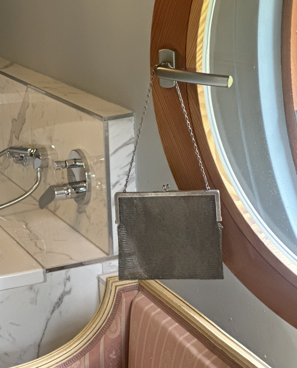 희소성은 더욱 더 높아지는 아름다운 1940년대 제작된 프랑스의 아르데코 고급 빈티지 네트 메쉬 퍼스로, 은도금 마감과 우아하게 빛나는 사파이어 잠금 장식이 돋보이는 아이템입니다. 손에 쥐었을 때 반짝이는 메쉬 질감과 세련된 핸들에 단순한 클러치가 아닌 진정한 소장 가치가 있는 예술품을 연상시킵니다. 칵테일, 웨딩, 이브닝 파티 등 특별한 자리에서 고급스러운 빈티지 스타일을 완성하며, 소장하거나 선물로도 완벽한 제품입니다.1940년대의 우아함과 장인정신을 당신의 스타일에 더할 수 있는 특별한 기회입니다. 전체적으로 깔끔하게 보존되었고 제품은 깔끔하게 세척한 후 보내드립니다.