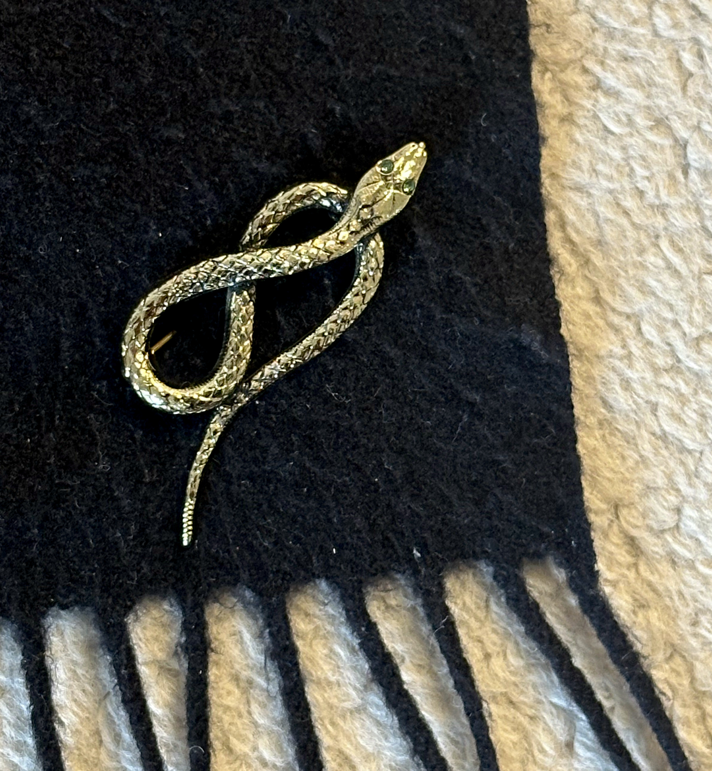 Snake Brooch with Jade-Colored Eyes