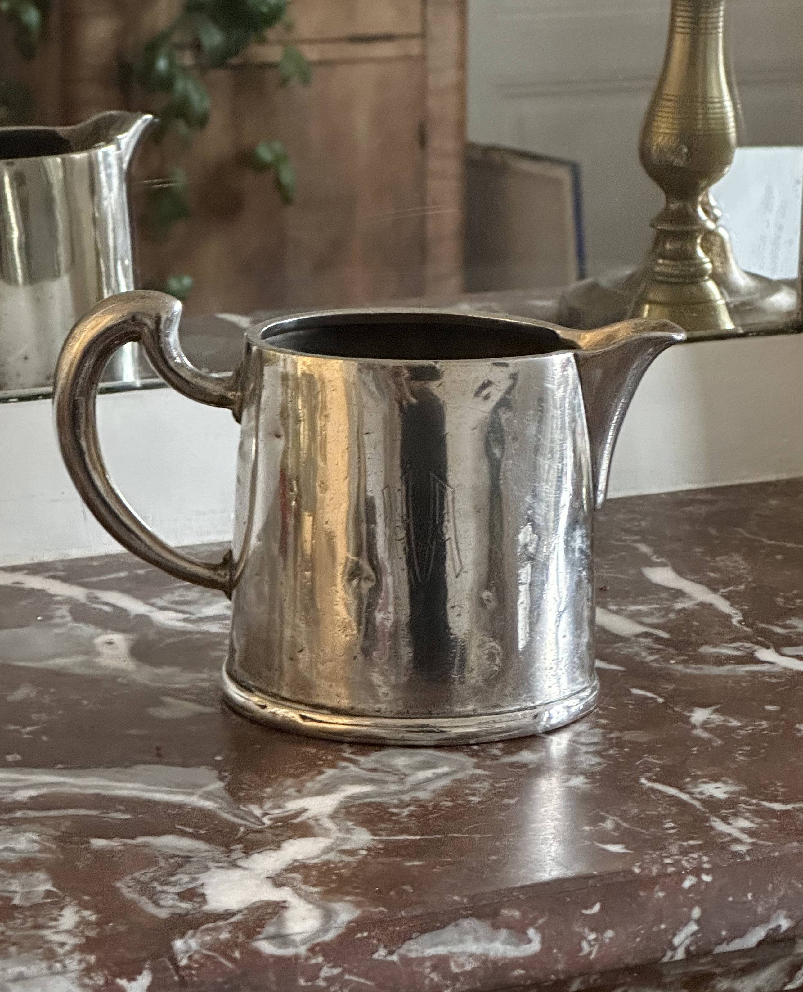 프랑스 명문 실버웨어 하우스 ERCUIS에서 제작된 앤틱 jar/화병입니다. 바닥면에는 브랜드의 시그니처, 홀마크, 넘버링이 모두 남아 있어 소장 가치를 더욱 높여주는 작품입니다. 균형 잡힌 실루엣과 우아한 곡선이 특징이며, 프랑스 실버플레이트 특유의 정제된 아름다움이 그대로 느껴집니다. 크림이나 밀크 서버로 실사용이 가능할 뿐 아니라, 테이블 위를 완성하는 클래식한 오브제로도 손색이 없습니다.