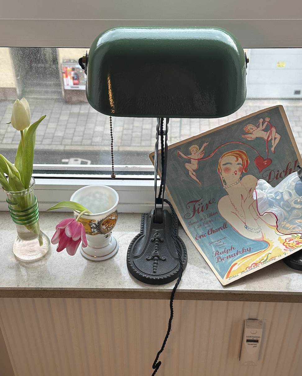 1920년도 독일에서 만들어진, 너무나도 클래식한 빈티지 감성이 돋보이는 그린 에나멜 인더스트리얼 뱅커 램프입니다. 불을 크거나 끄는 방식부터 로맨틱한데, 내려오는 줄을 당기면 불이 켜집니다. 튼튼한 금속 소재에 깊이 있는 녹색 에나멜 코팅이 더해져 세련되면서도 고풍스러운 분위기를 연출합니다. 오리지널 인더스트리얼 디자인이 적용된 이 조명은 책상, 작업 공간, 서재, 카페 등 다양한 공간에서 멋스럽게 활용 가능하며, 따뜻하고 부드러운 조명으로 실용성과 인테리어 효과를 동시에 제공합니다. 고전적인 뱅커 램프 스타일을 유지하면서도 산업적인 매력이 가미된 디자인으로, 빈티지 아이템을 사랑하는 분들에게 소장 가치가 높은 특별한 조명입니다.