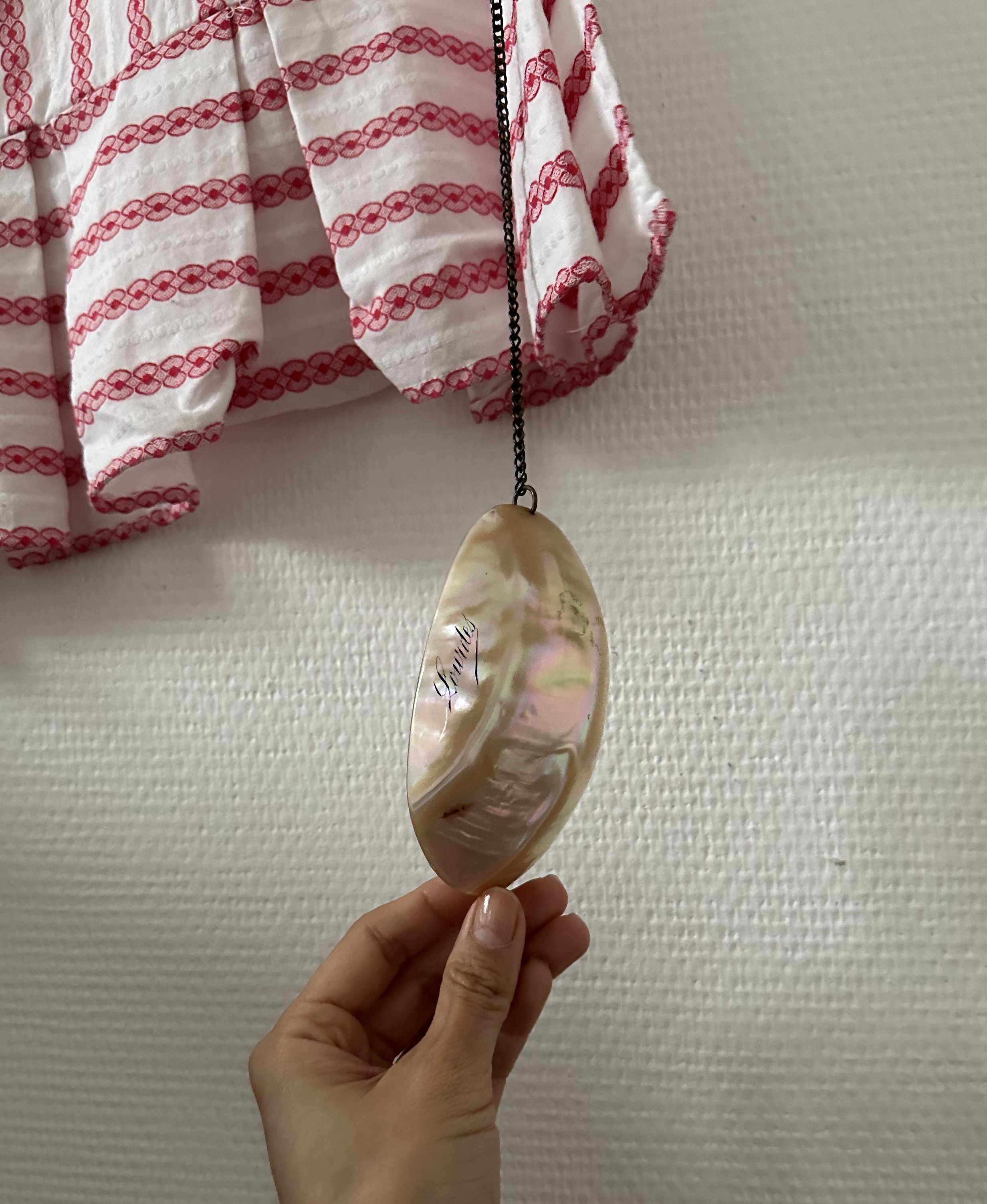 프랑스 루르드 (Lourdes) 에서 제작된 앤티크 순례자용 컵입니다. 자개 소재로 만들어졌으며, 표면에는 “Lourdes” 각인과 성모 마리아 이미지가 새겨져 있습니다. 체인이 함께 연결된 형태로, 성지를 방문한 순례자들이 기념으로 구입하거나 성수를 담기 위해 사용하던 작은 휴대용 컵입니다. 당시 체인을 바짓고리에 걸어 이 자개 컵을 달고 다녔다고 하네요. 루르드는 가톨릭 순례지로 잘 알려진 장소로, 이러한 아이템은 신앙적 의미와 함께 역사적·수집적 가치를 지닙니다. 자개 특유의 은은한 광택과 섬세한 조각 디테일이 돋보이며, 흥미로운 이야기가 담긴 앤틱 장식용으로도 매력적인 작품입니다.
