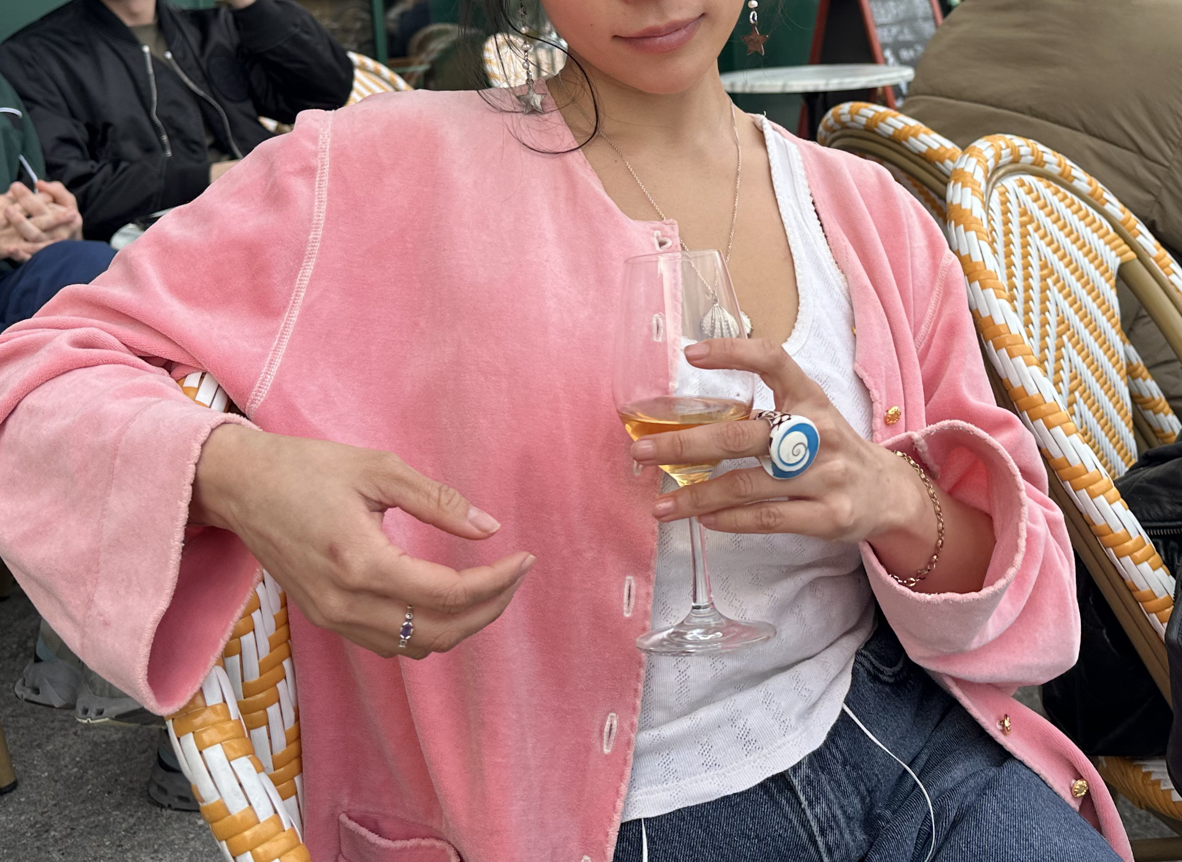 포근한 벨벳 소재와 자수 디테일이 만나 완성된, 단독으로도 완벽한 포인트 가디건입니다. 화사한 코랄 핑크 컬러가 돋보이는 제품으로, 가장 매력적인 디테일은 바로 왼쪽 가슴 주머니 위에 정교하게 수놓아진 발레 슈즈 자수로, 빈티지하면서도 사랑스러운 분위기를 극대화합니다. 오픈형 라운드 넥 라인을 따라 달린 작고 정교한 골드 버튼은 제품에 세련된 포인트가 되어주며, 벨벳의 광택과 어우러져 더욱 고급스러워 보입니다. 실용적인 프론트 포켓과 더불어, 자연스럽게 롤업해서 입으면 디테일은 편안하면서도 스타일리시한 실루엣을 완성합니다. 가벼운 이너 위에 가디건으로 걸치거나, 버튼을 모두 잠가 단독 스웨터처럼 데님 팬츠나 스커트와 매치하여 로맨틱하고 캐주얼한 데일리룩을 연출하기 좋습니다.