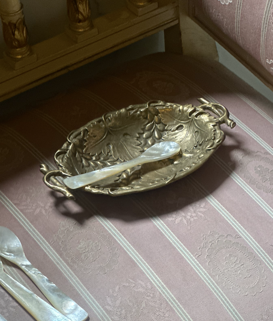 오스트리아 콜리니 (Collini) 에서 제작된 빈티지 황동 비누 보울로 아르누보 스타일의 우아한 디자인이 특징입니다. 콜리니는 1898년 오스트리아에서 설립되었고 그때부터 현재까지 유럽에서 금속 표면 코팅 분야의 선도 기업으로 자리매김하고 있습니다. 제품은 포도 모티프가 섬세하게 장식되어 있으며, 황동 특유의 은은한 광택이 고급스러운 분위기를 더해줍니다. 특히 영국의 윌리엄 모리스 (William Morris) 의 곡선적이고 유기적인 형태, 자연 모티프, 장식적이고 화려한 패턴이 떠오르는 아름다운 제품입니다. 욕실이나 화장대 위에서 비누 받침으로 사용하거나 작은 장신구를 올려두는 장식용 오브제로 활용할 수 있는 소장 가치 높은 빈티지 아이템입니다.