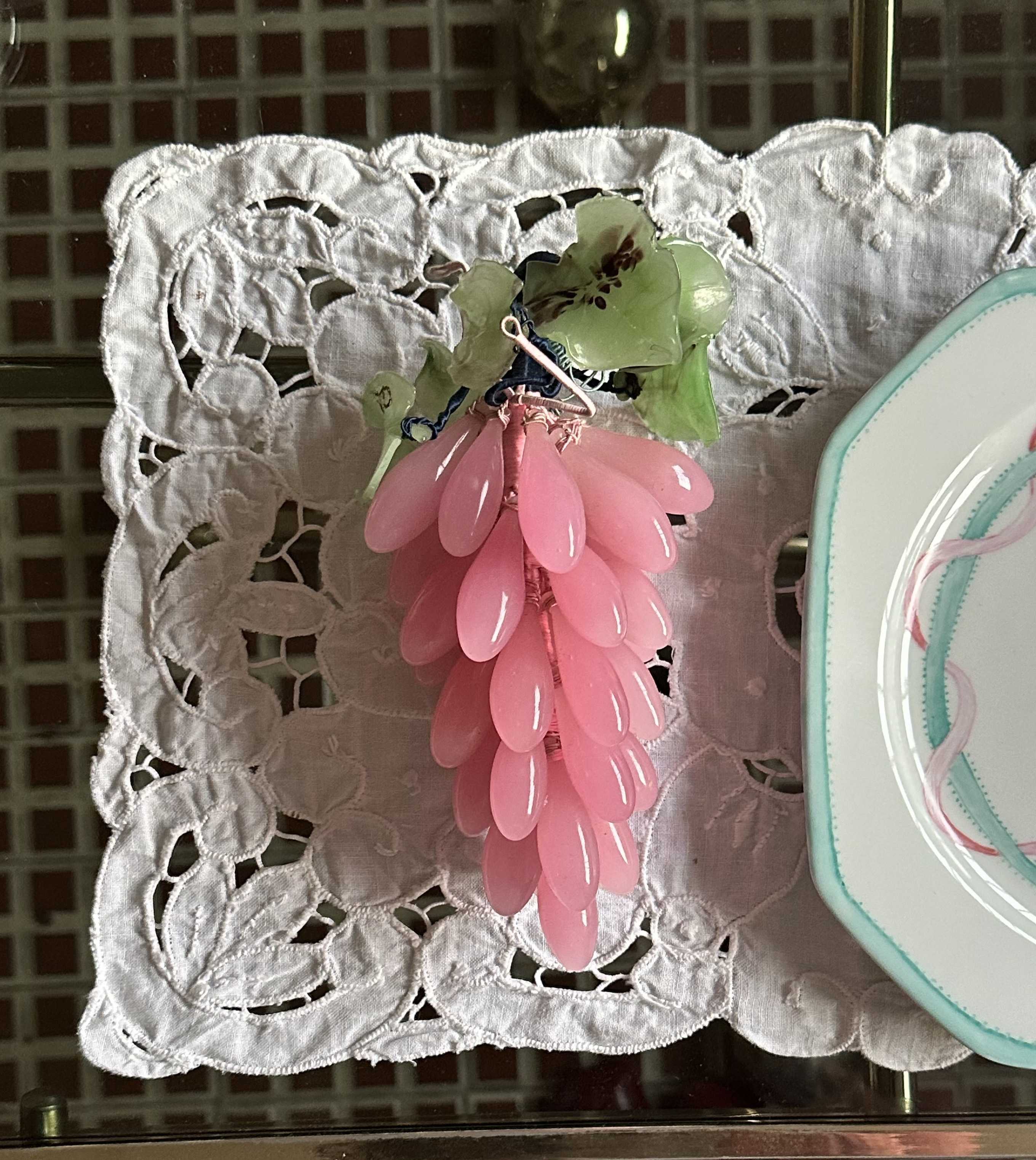 Vintage Hand-made Pink Opal Grape Object