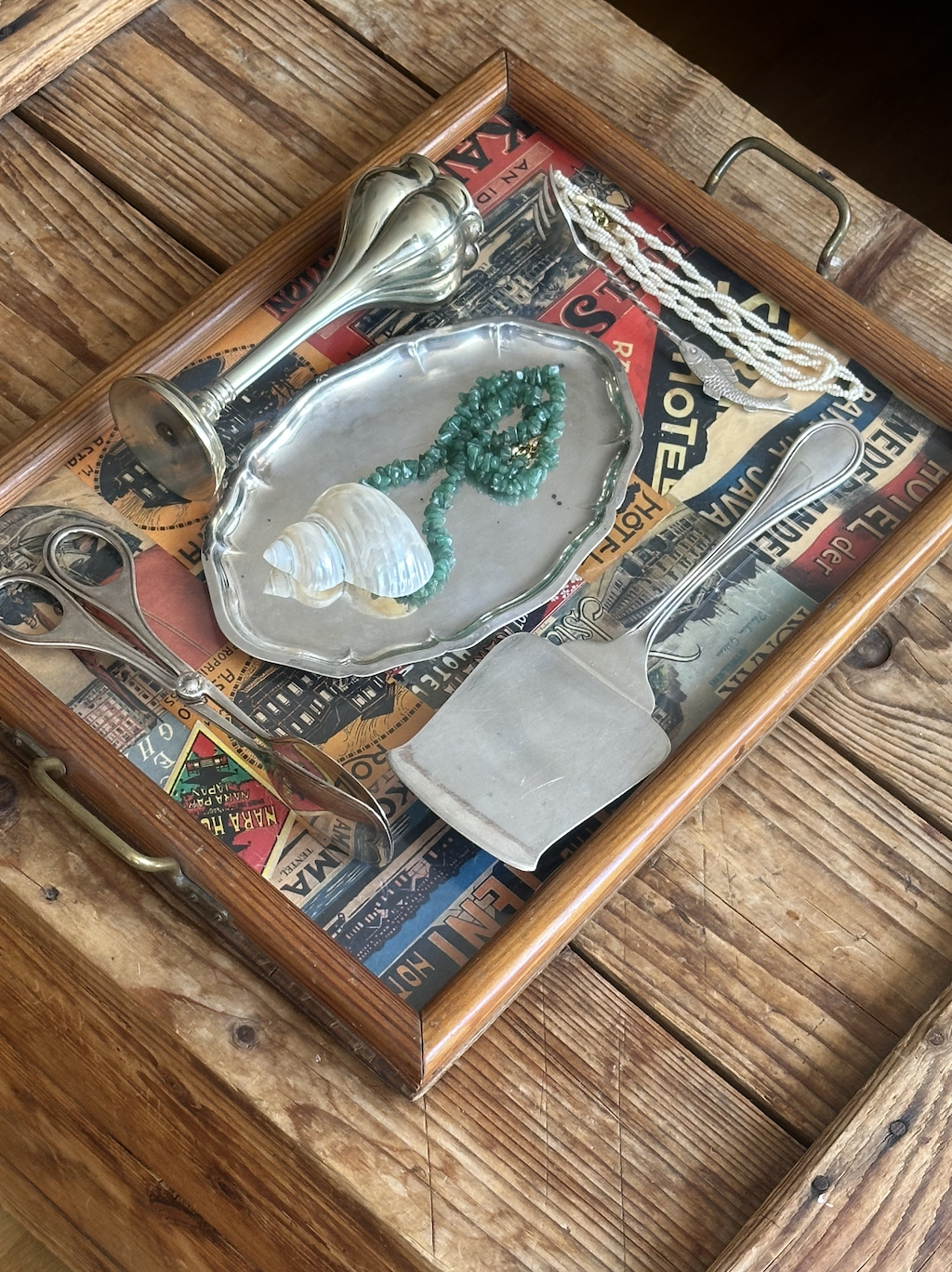 1950 Vintage Hotel Labels Wooden Tray