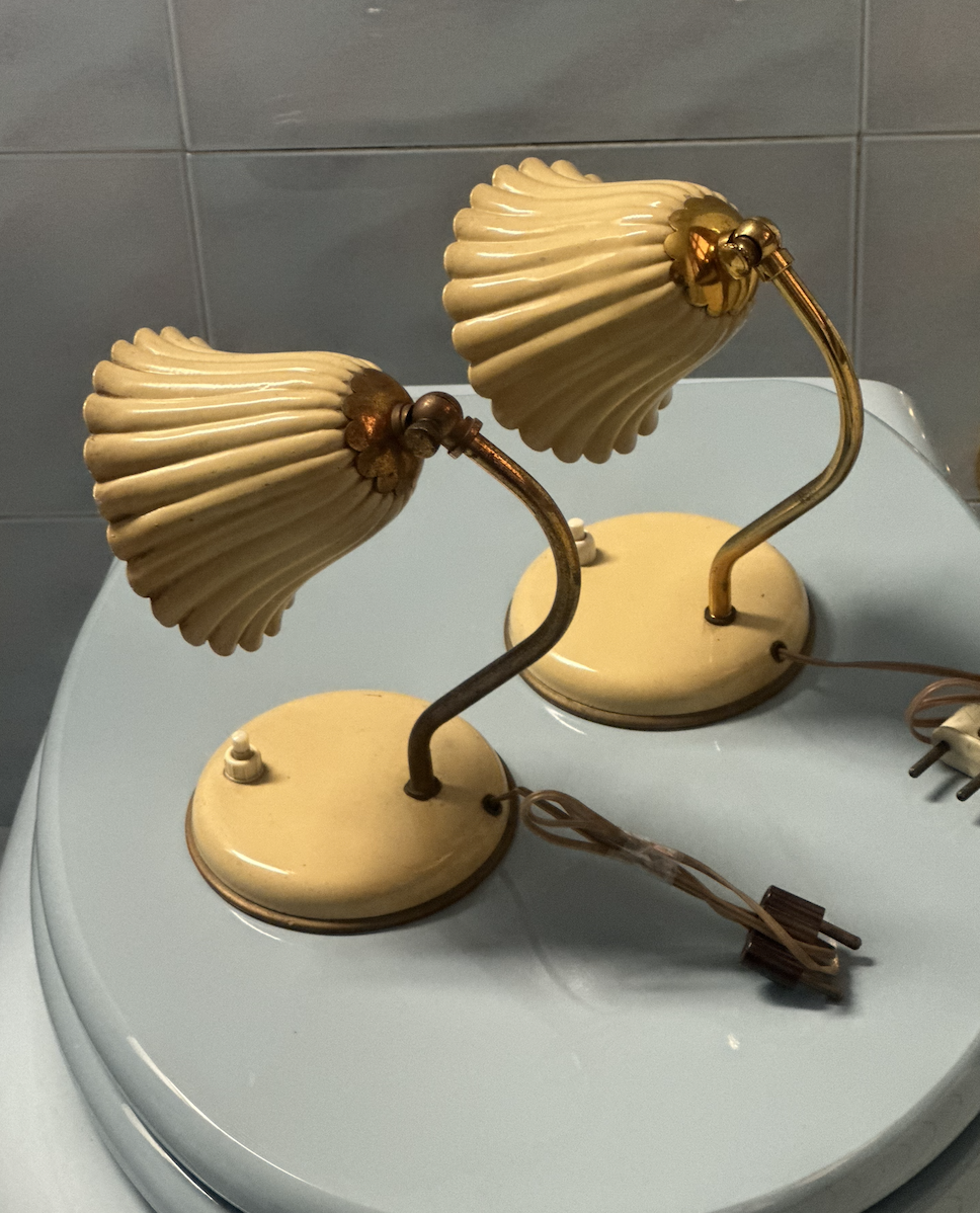 섬세한 디테일과 견고한 금속 마감은 당시 장인정신의 진수를 보여주며, 오브제로서도 뛰어난 조형미를 갖추고 있어 실용성과 장식성을 모두 만족시킵니다. 조명을 켰을 때, 셸 쉐입 안쪽에서 퍼지는 따뜻한 빛은 공간에 은은한 포인트가 되어주며, 침실, 거실, 서재 등 어떤 인테리어에도 자연스럽게 어우러집니다.