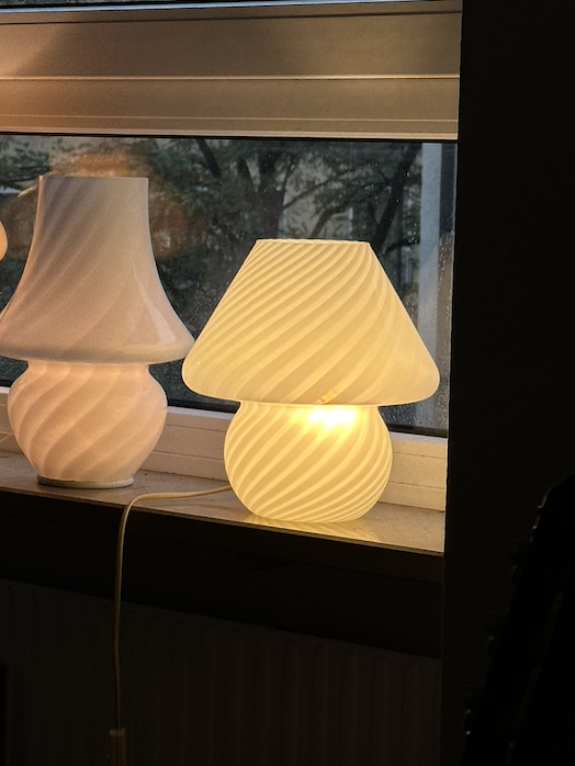 1960년대 이탈리아 무라노에서 제작된 수공예 머쉬룸 테이블 램프입니다. 전통 있는 무라노 유리 공예의 섬세함이 그대로 담긴 이 램프는, 유럽에서도 많은 컬렉터들이 찾고있고 200만원부터 1000만원까지 높은 가격대를 자랑합니다. 버섯을 닮은 유려한 곡선 형태는 1960년대 유럽 디자인의 상징적인 미감을 보여주며, 램프를 켰을 때 은은하게 퍼지는 빗살무늬 조명은 공간 전체를 부드럽고 로맨틱한 무드로 감싸줍니다. 무라노 장인들의 손길로 완성되어 예술적 가치와 빈티지 감성을 동시에 담아냈습니다. 변치 않는 클래식한 아름다움과 세월의 깊이를 간직한 이 램프는, 시간이 지날수록 가치가 높아지는 오브제 컬렉션으로 추천드립니다. 조명의 색을 바꾸면 다른 무드로 쉽게 바꾸실 수 있습니다. 전체적으로 우아한 컨디션으로 보존되었습니다. 테스팅 완료, 스위치 on/off