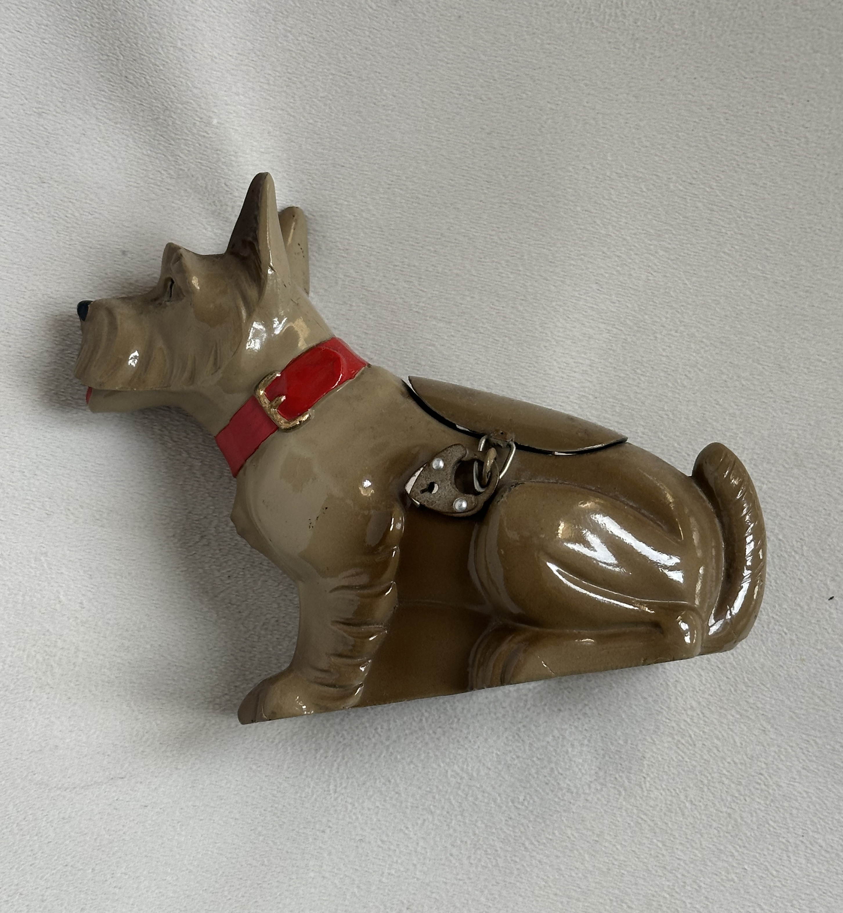 희소성이 아주높은 1930년도에 제작된 프랑스 아르데코 빈티지 강아지 모티프 저금통입니다. 하트모양 자물쇠를 열거나 잠궈 저금통을 비울 수 있습니다. 앤틱 스펠터 소재로 묵직한 질감과 섬세하게 핸드 페인팅 처리되어 빈티지 특유의 따뜻한 감성과 수공예적 매력을 동시에 지닌 작품입니다. 강아지 특유의 사랑스러운 모습이 아주 잘 나타났고 장식성과 실용성을 동시에 갖춘 아이템으로 단순한 저금통을 넘어 컬렉터블 오브제로서의 가치가 있습니다. 빈티지 인테리어, 반려동물 모티프 컬렉션, 혹은 프렌치 아르데코 스타일 공간에 포인트가 되는 작품입니다.