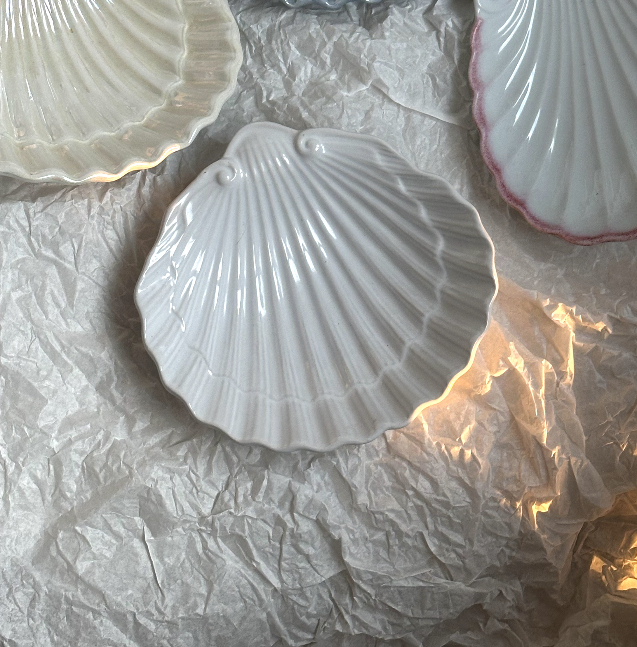 1970년도에 제작된 프랑스의 아름다운 진주 포셀린 플레이트입니다.은은하게 진주처럼 빛나는 모습에 좋아하는 주얼리를 올려두면 여린 무드로 만들어줍니다. 제품 자체에 굽이 있어 멀리서도 입체감이 있는 세련된 디자인입니다. 개인적으로 쉘을 너무 사랑해서 컬렉한 쉘들이 많은데요, 이 제품은 조개의 사랑스러운 분위기만을 담은, 여성스럽고 순수한 분위기를 풍깁니다. 공간을 조금 더 무드있고 특별하게 만들어줄 아름다운 오브제입니다. 핸드메이드로 제품이 조금씩 다릅니다. 첫번째 사진의 제품으로 참고 부탁드려요.