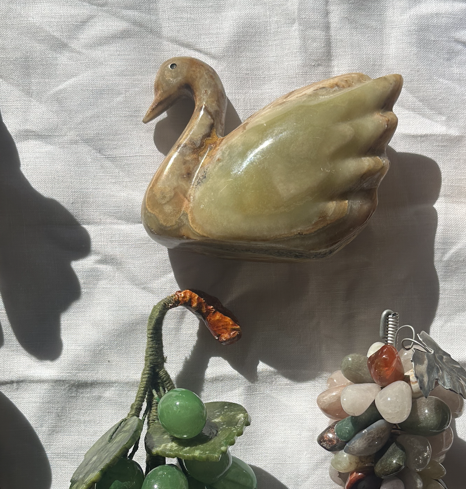 부드러운 곡선으로 조각된 그린 오닉스 마블 백조 오브제입니다. 자연석의 고유한 결과 깊은 색감이 그대로 살아있어, 한 점 한 점이 모두 다른 유일무이한 조각 작품입니다. 온화하게 흐르는 날개 라인과 우아한 목의 실루엣은 공간에 차분한 클래식 무드를 더해주며, 적당한 무게감으로 데스크, 책장, 거실 선반 등 다양한 곳에 안정적으로 놓아둘 수 있습니다. 자연이 만든 무늬와 손으로 다듬어진 곡선이 함께 만든 한 점의 조용한 우아함.