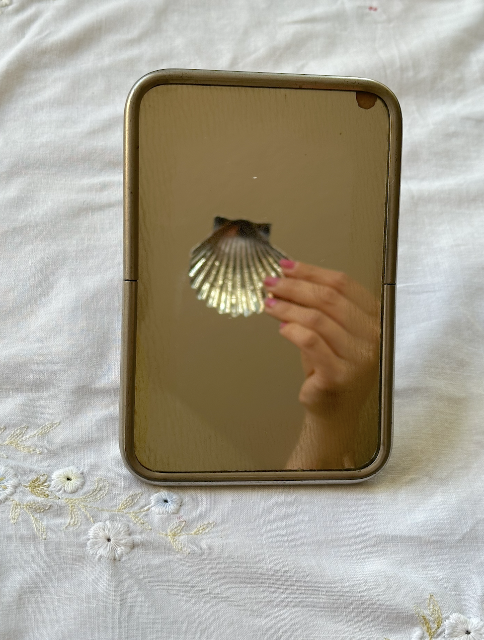 1970년도 바버숍에서 실제로 사용되던 스타일로, 고전적인 분위기와 빈티지한 감성을 더해줍니다.접이식으로 거치대처럼 사용해 테이블 미러로 사용할 수 있고, 벽에도 걸어서 사용하실 수 있는 실용적인 디자인입니다. 지금은 보기 드문 아날로그 감성이 살아 있는 수집 가치 있는 거울입니다. 거울 자체에 뿌옇고 선명하지 않은 부분들이 오히려 빈티지 감성을 더욱 자극시킵니다.