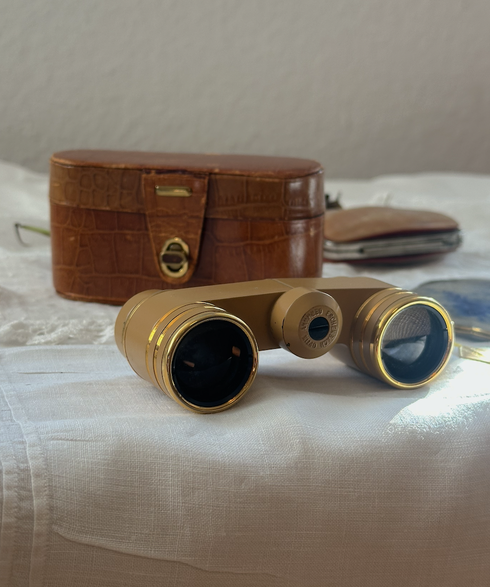 Eschenbach "Manon" Opernglas은 독일의 유명 1913년 설립된 광학 회사에서 만든 시리즈 중 하나예요. 이 "Manon" 모델은 1960년대에 가장 많이 생산되었고, 그 시기 독일과 유럽 전역에서 공연·오페라 관람용으로 인기를 끌었어요. 정교하게 제작된 프레임과 고급스러운 디자인과 캬라멜 컬러의 제품이 시대를 초월한 클래식한 아름다움을 보여줍니다. 같은 브랜드는 아닌것처럼 보이지만 찾아보기 힘든 케이스와 함께 포함되어 소장가치는 더욱 높으며 컬렉터에게 완벽한 선택이 될 수 있습니다. 전체적으로 오래된 세월의 사용감이 보이지만 전체적으로 깔끔하게 보존된 제품입니다. 독일 장인의 세련된 감각이 담긴 특별한 컬렉터스 아이템입니다.