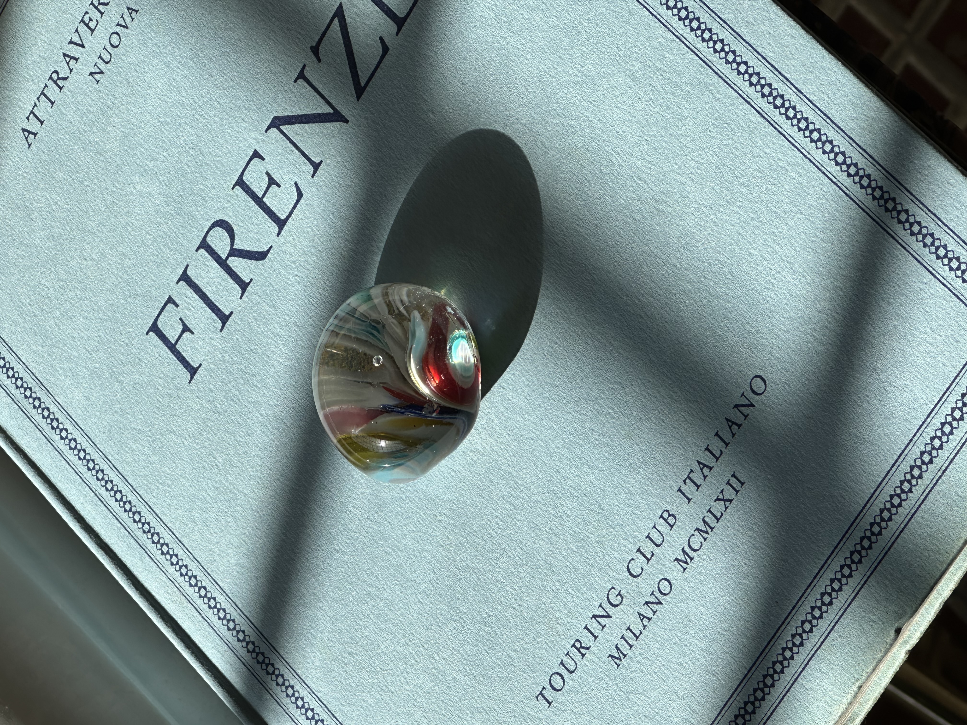 보물을 만난것같은, 빗방울같은 쉐잎과 영롱함이 정말 눈부시게 아름답다고 생각하는 제품입니다. 유럽 컬렉터 사이에서도 단연 인기인 오리지널 무라노의 페이퍼웨이트는 가격대가 상당히 높습니다. 무게감과 균형감이 있고 작지만 일상에서 반짝이는 역할을 해줄것입니다.