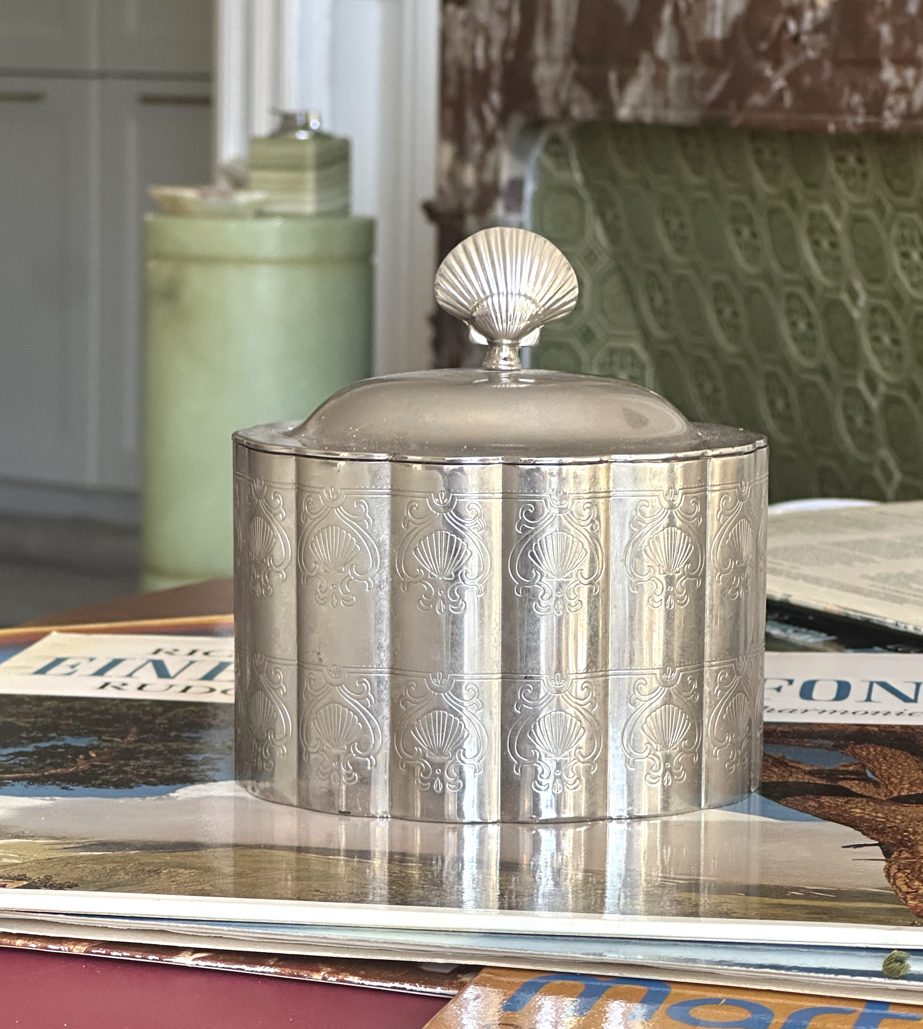 세련된 이 실버컬러 주얼리 박스는 조개껍데기를 형상화한 우아한 스캘럽 쉘 디자인의 덮개가 돋보이는 희소성 높은 빈티지 피스이며, 정교하게 세공된 은도금의 광택이 빛을 받을 때마다 고급스러운 아우라를 뿜어내어 화장대 위나 콘솔 위에서 단숨에 시선을 사로잡는 존재감을 발휘합니다. 바다의 아름다움을 부드러운 곡선의 입체감으로 표현하였고 라이닝은 레드컬러의 벨벳으로 마무리되어 소중한 반지나 목걸이를 안전하게 보관하는 기능적인 함을 넘어 그 자체로 완벽한 조각적 오브제가 되어줍니다. 일상의 공간에 클래식한 품격을 더해줄 뿐만 아니라 소중한 사람을 위한 위트 있고 감각적인 선물로도, 혹은 당신만의 빈티지 컬렉션을 빛내줄 소장품으로도 더할 나위 없는 가치를 선사할 것입니다.