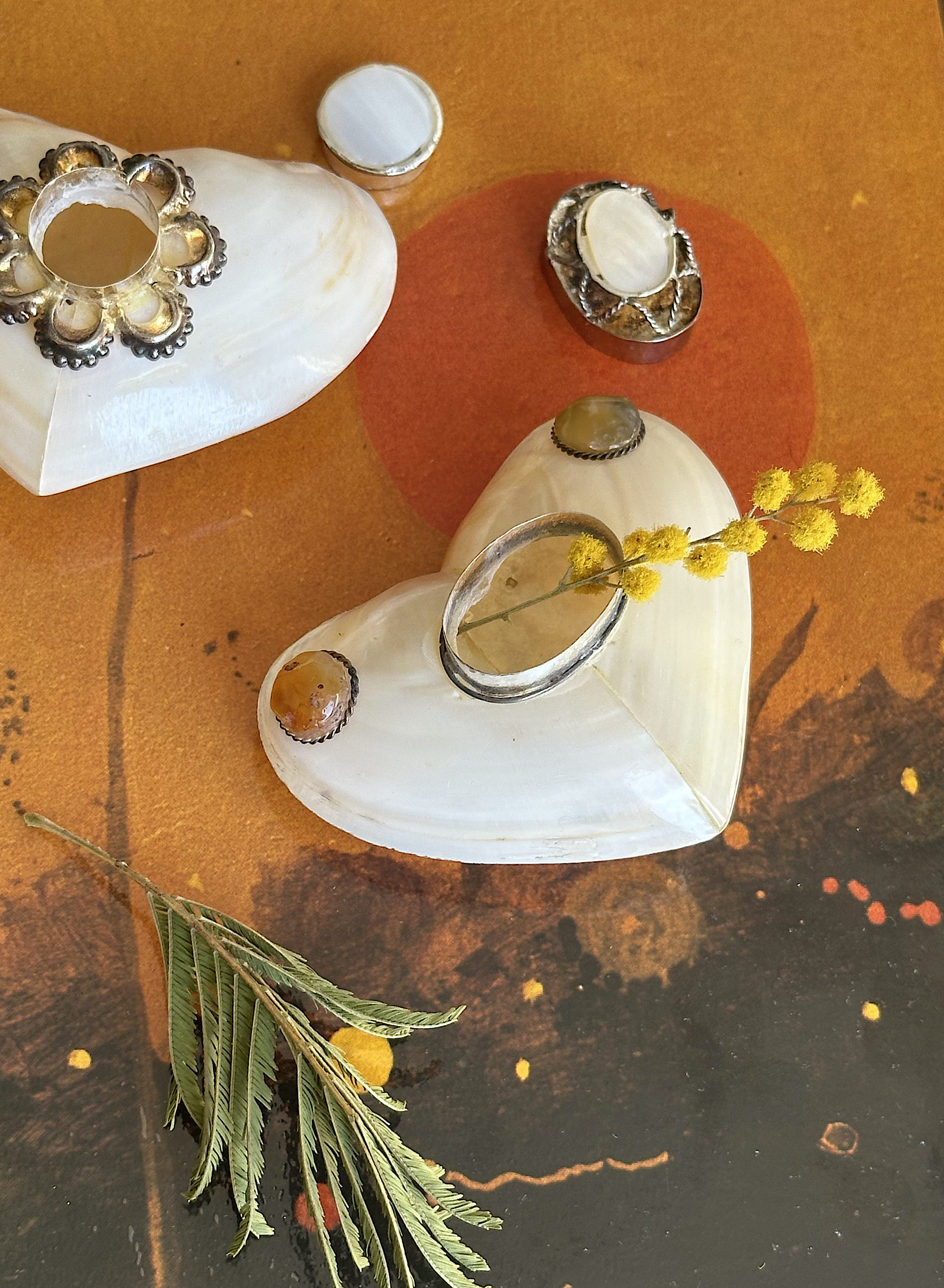 19세기 유럽의 로맨틱한 서사가 고스란히 담긴 이 앤틱 마더오브펄 박스는 자연이 준 고귀한 선물인 천연 자개를 정교한 하트 모양으로 다듬어 완성한 독보적인 피스입니다. 섬세한 수작업의 정수를 보여주는 중앙의 클로저를 열면 나타나는 내밀한 수납 공간은 소중한 작고 귀한 목걸이 등을 보관하기에 더할 나위 없이 완벽하며, 100년이 넘는 세월 동안 간직해온 은은한 무지갯빛 광택은 인위적인 공예품으로는 결코 흉내 낼 수 없는 자연 그대로의 아름다움과 장인의 숨결을 동시에 느끼게 해줍니다. 손안에 쏙 들어오는 사랑스러운 크기와 하트 모티프가 주는 낭만적인 분위기 덕분에 화장대 위의 품격 있는 오브제로서뿐만 아니라 사랑하는 마음을 전하는 가장 고전적이고도 특별한 선물로도 손색이 없으며, 시간이 흐를수록 그 가치를 더해가는 19세기 앤틱만의 깊이 있는 아우라를 소유할 수 있는 단 한 번의 기회를 놓치지 마세요.