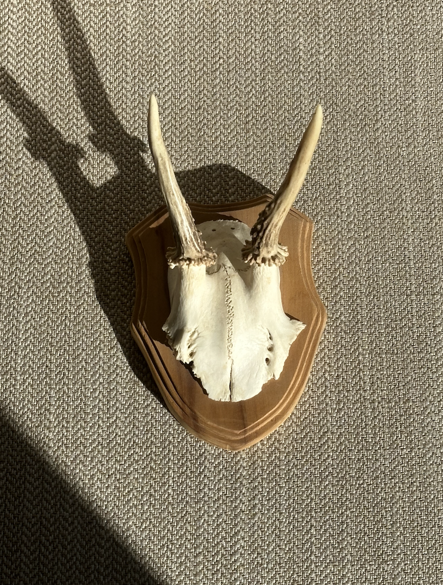 자연의 신비로움을 그대로 간직한 독일의 사슴 뿔 헌팅트로피입니다. 세밀한 골조와 텍스처가 살아 있는 디테일과 자연의 신비가 가장 많이 느껴지는 긴 뿔의 독특한 형태가 특징입니다. 시간이 지나면서 자연스럽게 형성된 화이트 본 컬러가 고풍스러운 분위기를 더하며, 세밀한 골조와 질감이 잘 보존된 상태입니다. 소형 사이즈로 어디에나 조화롭게 배치할 수 있고, 앤틱함이 묻어나는 인테리어 소품이나 수집용으로 완벽한 아이템입니다. 뒷면에 고리가 있어 벽에 쉽게 걸어두실 수 있습니다. 우아한 컨디션으로 보존된 컨디션입니다.