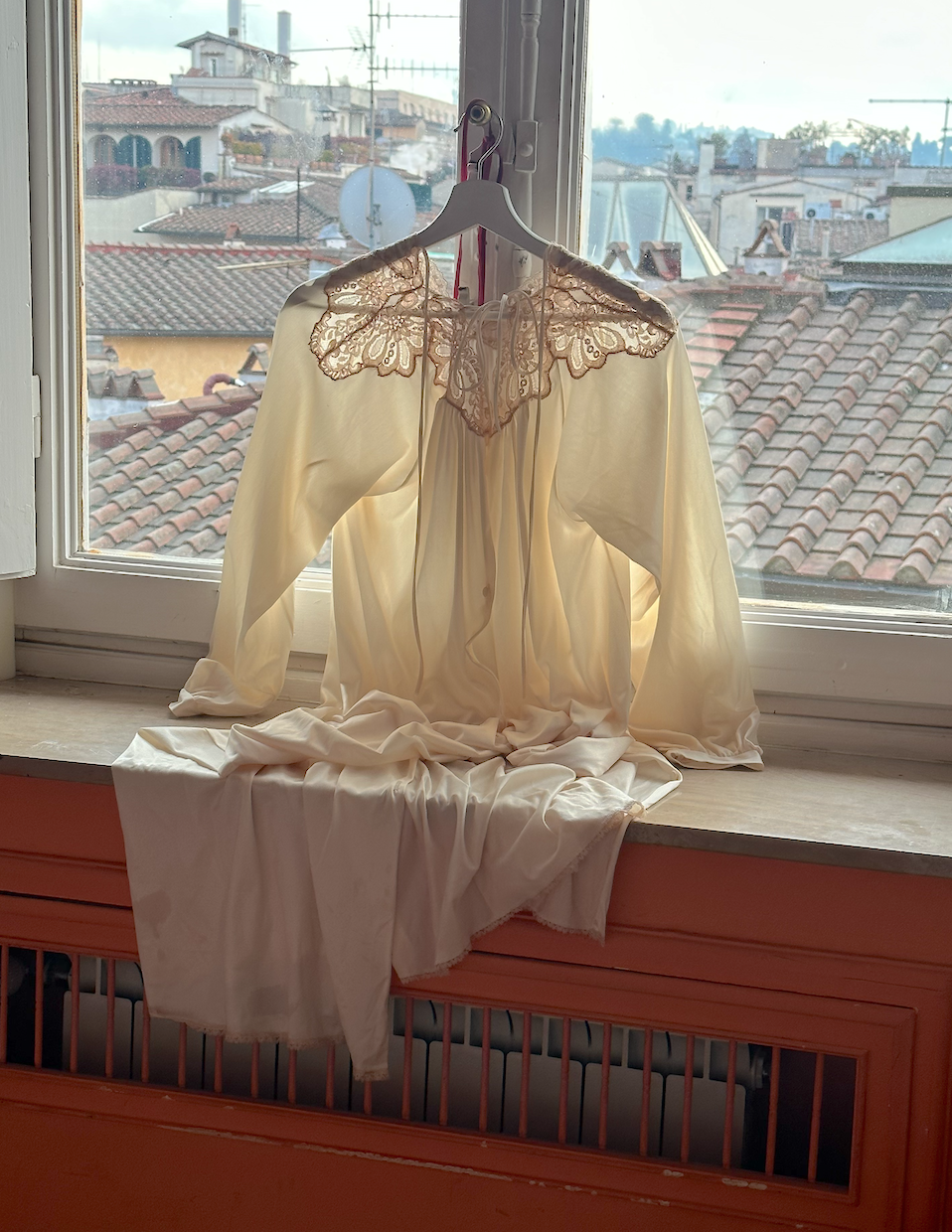요정같은 순수한 디자인과 무척 아름다운 핏의 고급스럽고 이탈리아의 베이지 롱 원피스 가운 드레스입니다. 앞에작은 단추들이 있어 드레스처럼 입으실 수 있고, 편하게 자켓처럼 걸쳐 입으셔도 좋습니다. 나비모양의 레이스 디테일과 두개의 리본을 묶어 더욱 고급스러운 모습을 보여줍니다. 여성스러운 디테일들이 은은하고 여린 느낌이 들고 아름다운 여성의 바디에 아름다움을 더욱 강조해줍니다. 구김이 잘 가지않는 부드러운 소재이고 입었을때도 보이기에도 시원해보이는 디자인입니다. 전체적으로 깔끔하게 보존된 제품이지만 빈티지 특성상 작은 미세한 얼룩이나 트임이 보일 수 있습니다.