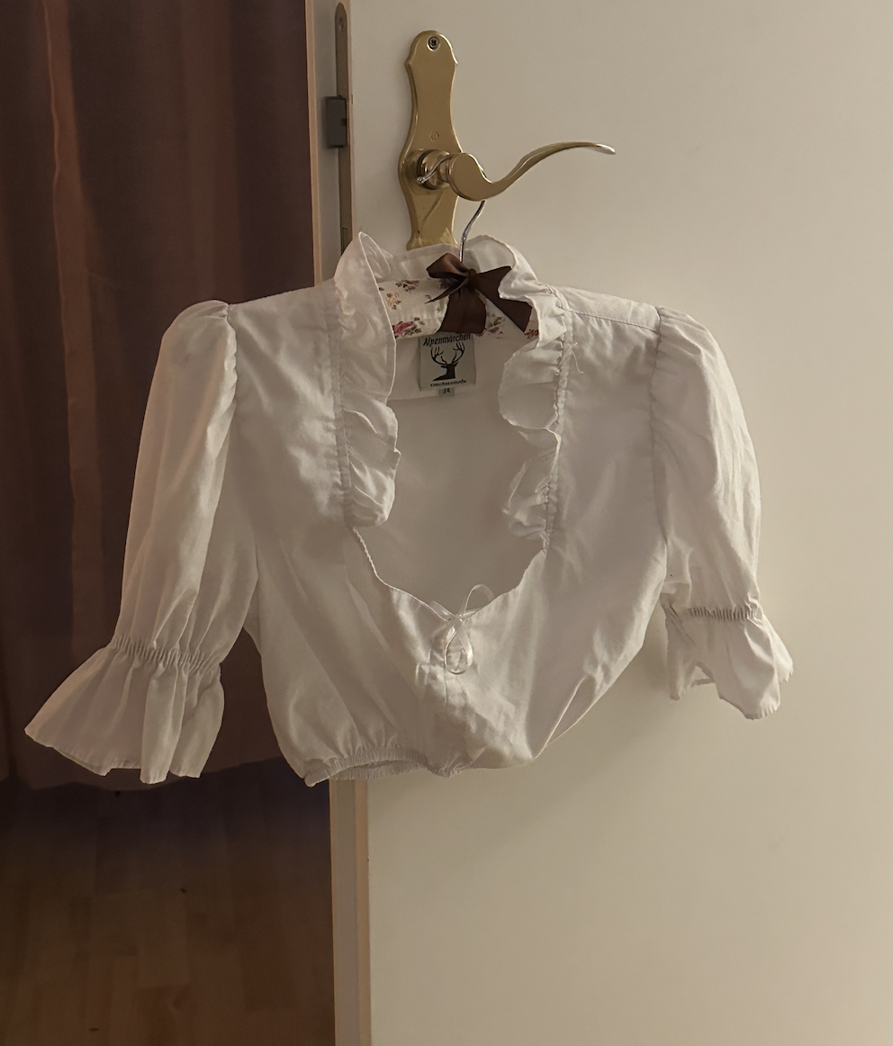 우아하고 로맨틱한 분위기를 품고있는 독일의 바바리안 화이트 블라우스입니다. 살결에 닿는 느낌이 너무나도 편안한 소재로 여름에도 시원하게 입으실 수 있고 가슴라인이 강조되어 더욱 여성스럽고 우아한 느낌이 듭니다. 허리가 들어간 핏으로 포인트로 허리가 얇아보이고 구김이 잘 가지않는 부드러운 소재이고 슬립 등과 함께 매치하거나 오픈해서 우아하게 입으실 수 있습니다. 전체적으로 깔끔하게 보존된 제품이지만 빈티지 특성상 작은 미세한 얼룩이나 트임이 보일 수 있습니다.
