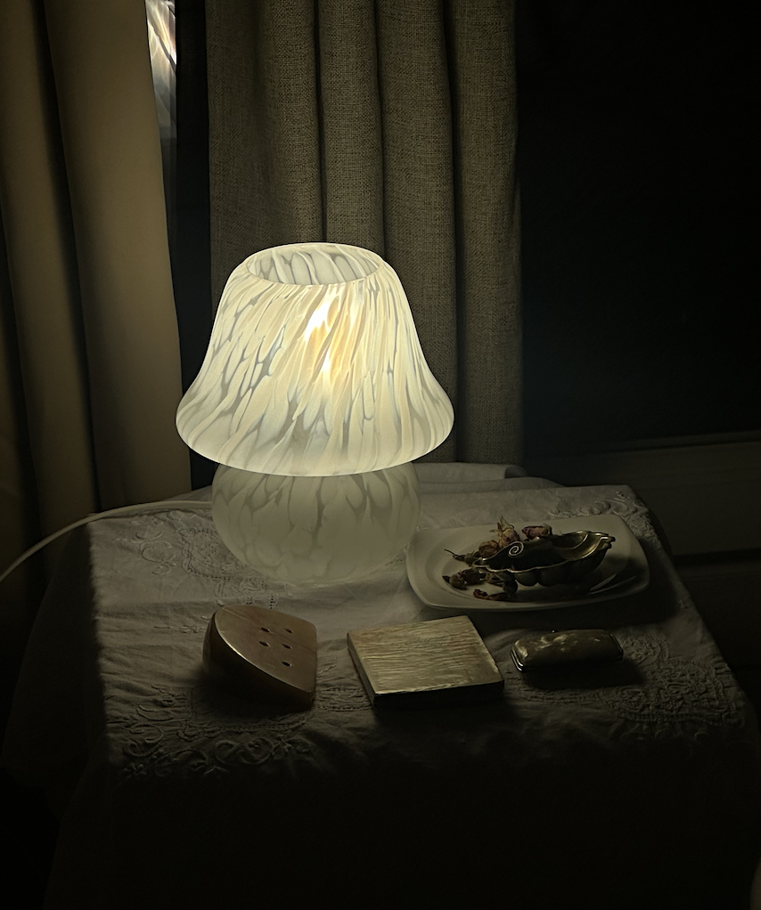 Hustadt Leuchten은 1970년대 독일에서 활동한 유명 조명 브랜드로, 미드센추리 모던 디자인과 정교한 독일식 금속·유리 공예 기술로 잘 알려져 있습니다. 이 시기의 Hustadt 조명은 브루탈리즘과 스페이스 에이지 디자인이 조화를 이룬 대표적인 작품들로 평가받으며 세련되고 견고한 구조미를 보여줍니다. 특히 이 버섯 조명은 디퓨즈드 글로우 조명은 부드럽게 퍼지는 빛으로 공간을 감싸는 아름다움이 특징입니다. 오늘날에는 독일과 북유럽의 빈티지 조명 컬렉터들 사이에서 매우 높은 희소성과 미학적 가치로 사랑받고 있습니다. 아름다운 컨디션으로 보존된 제품입니다.