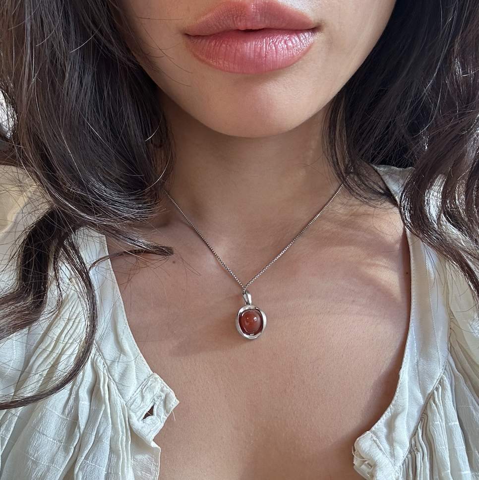 Sunstone Pendant Silver Necklace