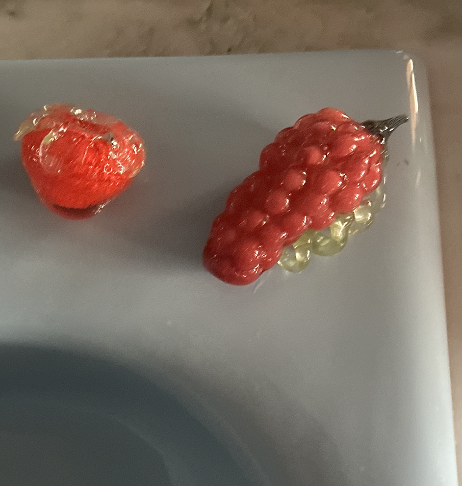 1960년도 이탈리아 무라노에서 장인의 손길로 하나하나 불어 만든 핸드블로운 페이퍼웨이트입니다. 13세기부터 베네치아 유리 기술의 정수를 간직한 유리 제작 방식으로, 유럽 귀족과 예술가들에게 사랑받아온 전통이 아직까지도 이어져 내려오고있습니다. 특히 무라노 글라스는 색을 유리에 녹여내는 독특한 방식으로, 우아한 색감과 깊이감이 뛰어납니다. 이 포도 디자인은, 깊고 맑은 레드/퍼플빛 유리가 빛을 머금을 때 더욱 투명하게 반짝이며, 자연 그대로의 싱그러움을 닮은 곡선과 볼륨감으로 공간에 생기를 불어넣는 특별한 무드의 하이엔드 소품입니다. 단순한 장식을 넘어 문진으로 활용 가능한 이 글라스는 실용성과 감성을 동시에 갖춘 작품으로, 인테리어 오브제는 물론 촬영 소품이나 감각적인 선물로도 완벽하며, 작은 공간에서도 빛나는 존재감으로 손바닥 위의 예술이라 부를 만한 깊이와 고급스러움을 자랑합니다.