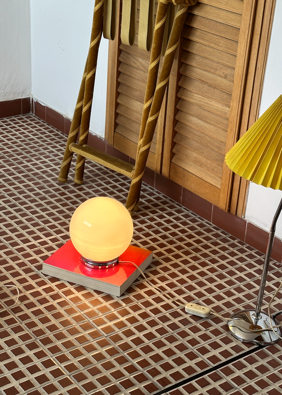 이탈리아의 글라스 공예로 세계적으로 유명한 무라노 1970년대 볼 램프입니다. 스페이스 에이지의 영향을 받은 유리 밀크글라스 볼 램프는 공간 시대적인 디자인의 램프의 디자인을 보여줍니다. Space age 스페이스 에이지는 일반적으로 1960년대 후반부터 1970년대 초반까지 우주 탐사와 우주 비행이 인간 사회에서 큰 관심을 끌고 있던 시기를 반영합니다. 특히 과학 소설, 영화, 음악, 패션, 디자인 등 다양한 문화적 영역에서 우주와 과학에 대한 특별한 관심과 영감을 불러일으켰습니다. 하얀 볼과 깔끔한 스테인레스의 베이스로 구멍이 반복적으로 뚫려있어 빛이 새어나와 그 모습이 참 매력적입니다. 테스팅 완료. 스위치 on/off. 25/250V