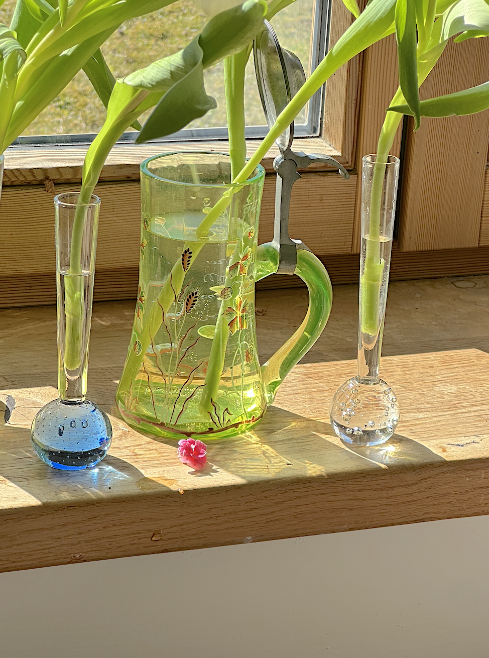 유리 표면에 작은 버블 패턴이 형성되어 독특한 텍스처와 빈티지한 감성을 연출합니다. 단일 꽃을 꽂았을 때 더욱 돋보이도록 디자인된 슬림하고 세련된 형태입니다. 깨끗하고 맑은 유리로 제작되어 자연광을 받으면 더욱 아름다운 반짝임을 선사합니다. 다양한 오브제나 다양한 인테리어스타일에 쉽게 어우러집니다.
