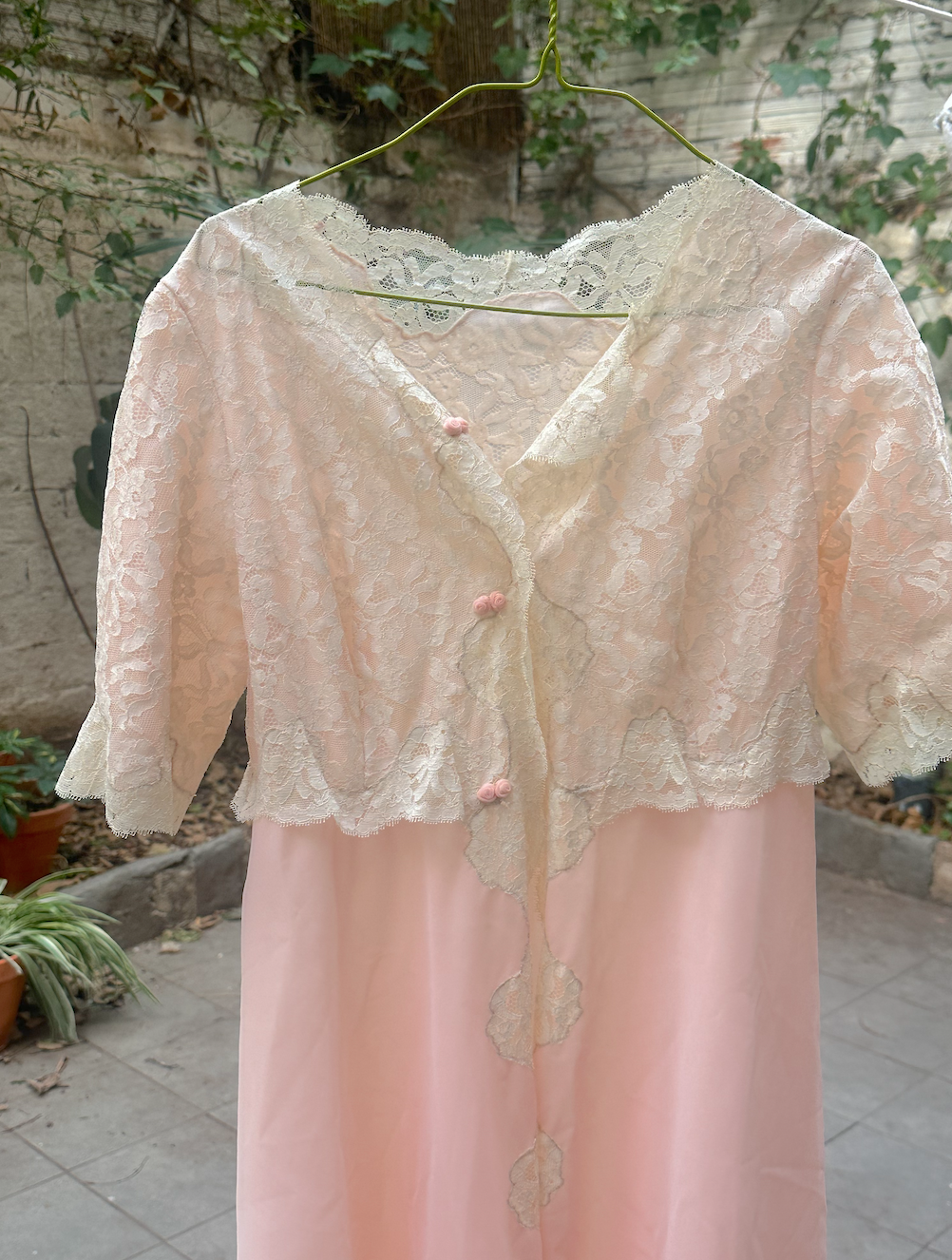 1970 Barcelona coral lace slip dress