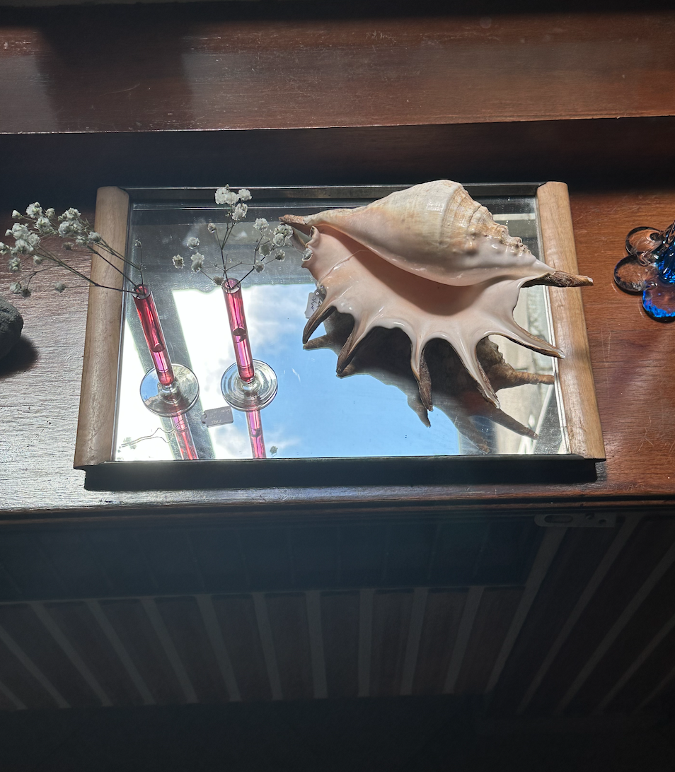 60년대의 나무와 메탈들을 조립해 핸드메이드로 만들어진 아주 아름다운 거울 트레이입니다. 당시 미드센츄리에 독특하게도 트레이 위 거울이 있어 제품이 비추어 더 신비롭고 세련된 느낌이 듭니다. 반짝반짝 거리는 이 거울 트레이로 정말 다양한 디스플레이를 하실 수 있는데, 제품을 더 밝고 예뻐보이는 효과가있습니다. 음식이나 음료를 나르는 본래 용도 뿐만 아니라 아끼는 화장품이나 향수를 올려두어도 아름답습니다. 전체적으로 안정감있게 만들어져 여러가지의 제품을 올려두어도 튼튼합니다.