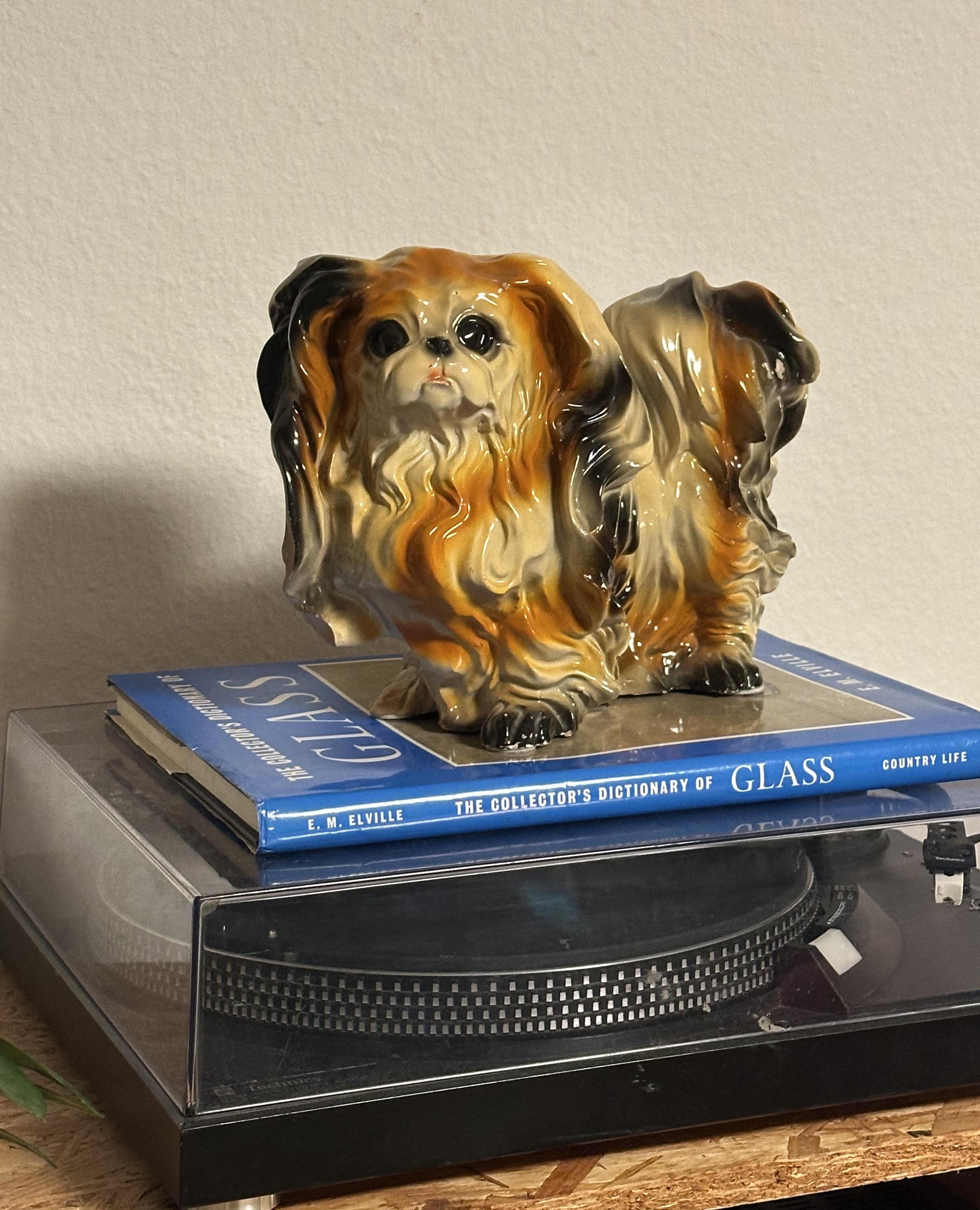 독일에서 바잉된 레트로 무드가 매력적인 페키니즈 (Pekingese) 희귀한 대형 피겨린입니다. 풍성한 털 표현과 낮고 단단한 체형이 페키니즈 특유의 개성을 잘 담아낸 오브제로, 뒷모습까지 사랑스러운, 존재감 있는 사이즈로 공간의 중심이 되어줍니다. 귀여움 속에 살짝 느껴지는 위트와 레트로 감성이 조화를 이루며, 단독으로 두어도 충분한 포인트가 됩니다. 거실, 콘솔, 선반 위에 놓으면 빈티지하고 따뜻한 분위기를 더해주며, 동물 모티프를 좋아하시는 분들께 특히 추천드립니다. 빈티지 제품 특성상 부분의 스크래치와 작은 칩들이 보이지만 이는 오브제가 지닌 시간의 멋과 개성으로 이해해 주세요.